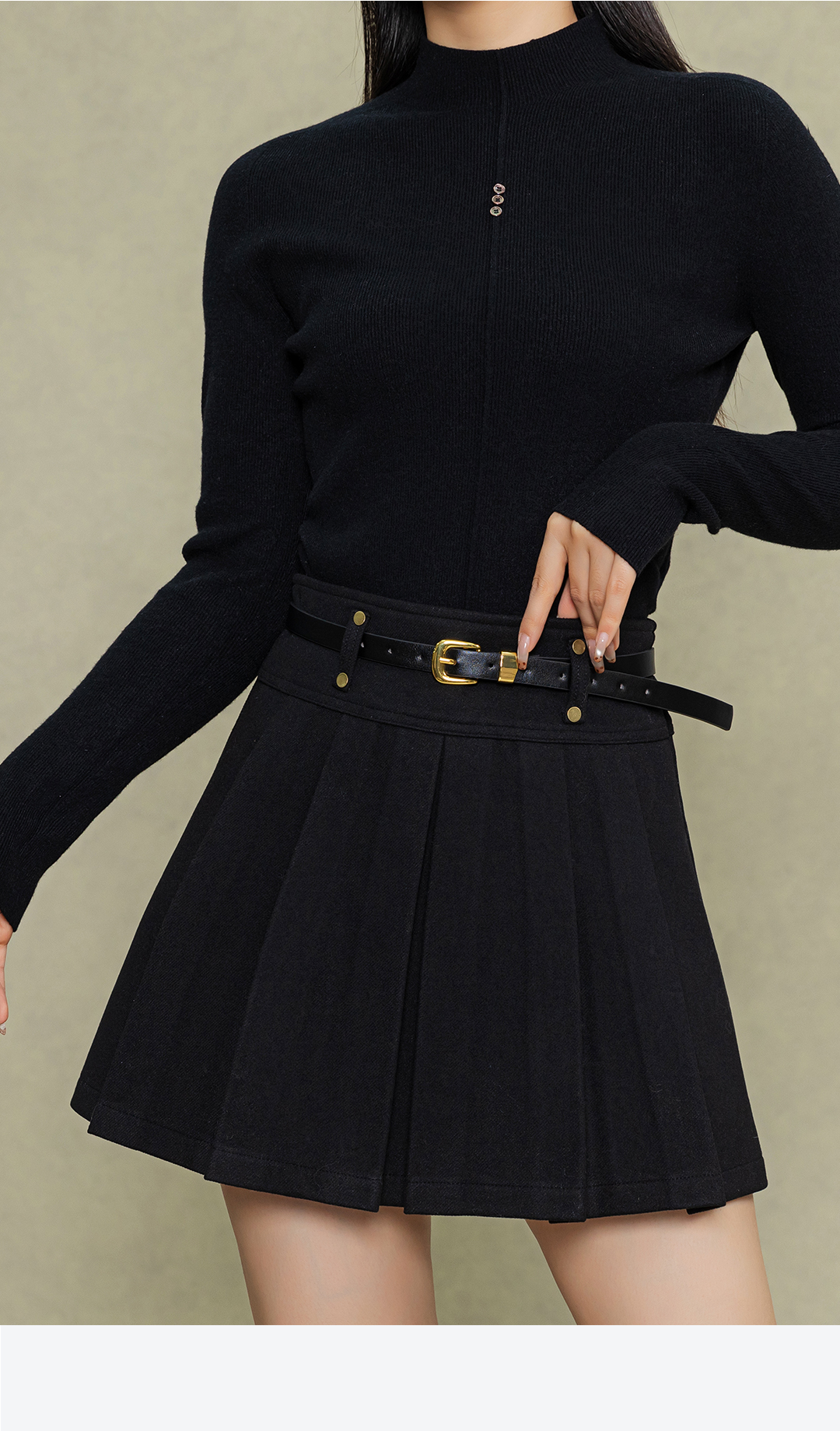 冬上新爆款百褶黑色高腰显瘦A字百搭短裙3254062 商品图0