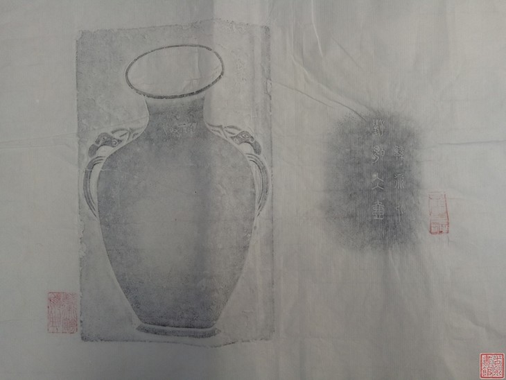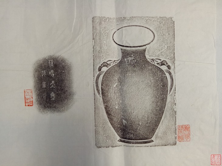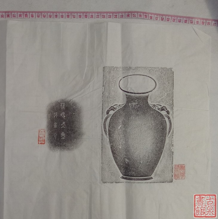 寓意平安吉庆。砚台极为珍贵。北京汉典艺术馆精品,周同祥先生藏品,甘兰手拓片。乌金效果。四尺四开,留有题跋空间。