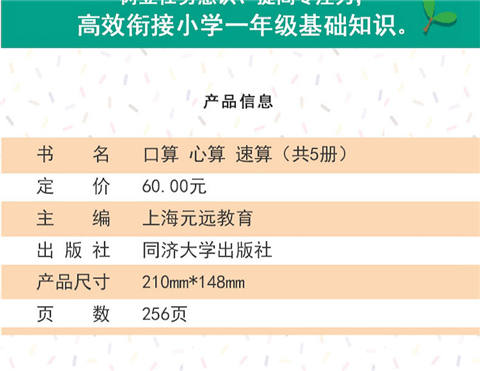 每日五分钟幼小衔接阶梯教程 口算心算速算(全五册)正版