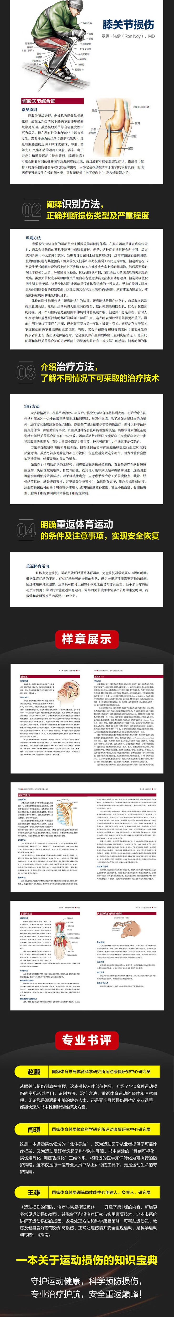 在体育锻炼的过程中,人们不可避免地会受到运动损伤的困扰。本书由20余位医生和治 疗师共同执笔,结合骨骼及肌肉彩色解剖图,对身体各部位一百四十余种运动损伤的常见形成原因、识别方法、治 疗方法、重返体育运动的条件和注意事项等进行了讲解,为教练员、专业运动员和运动爱好者提供了较为系统的运动损伤预防、治 疗与恢复指导。