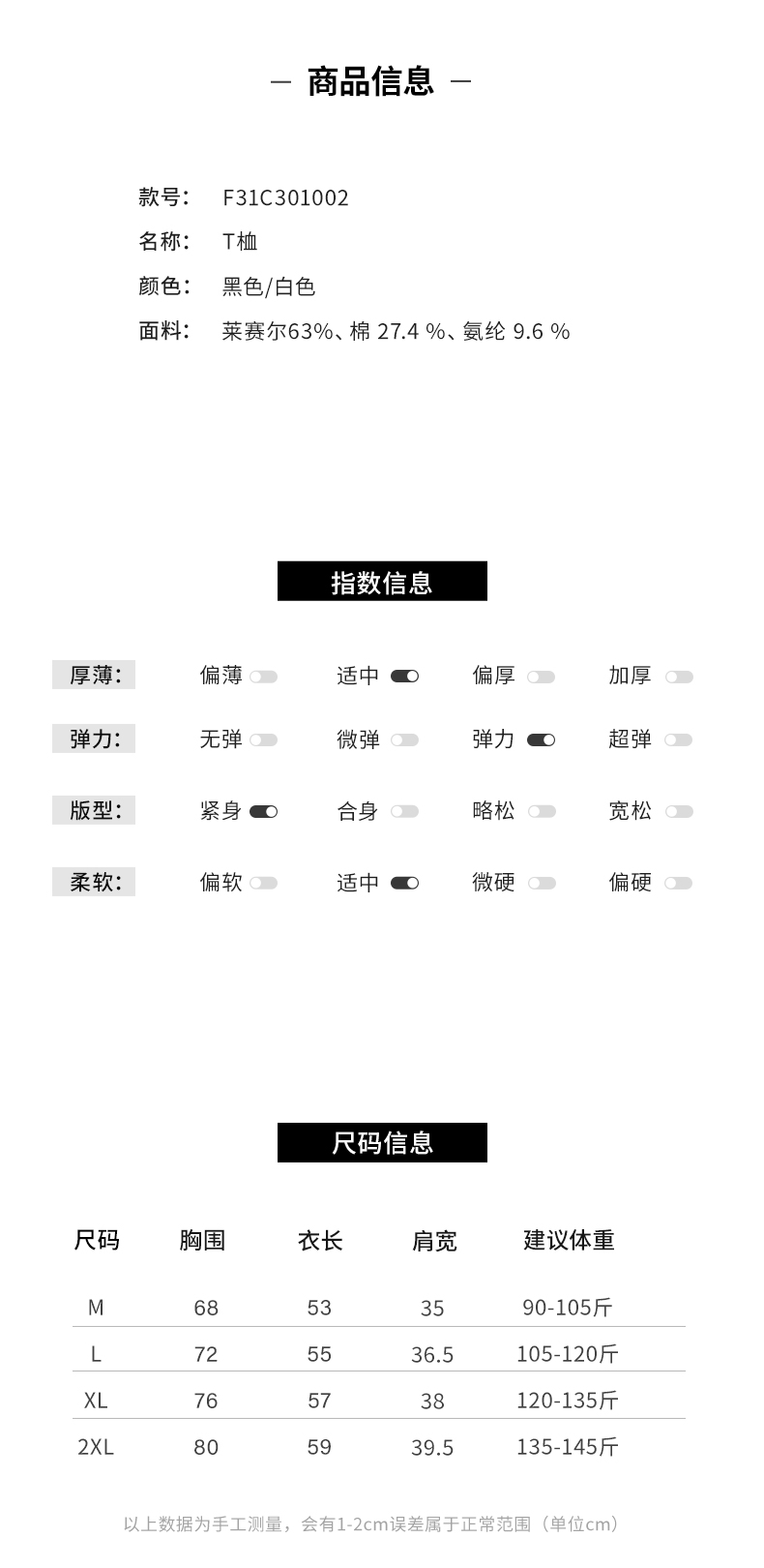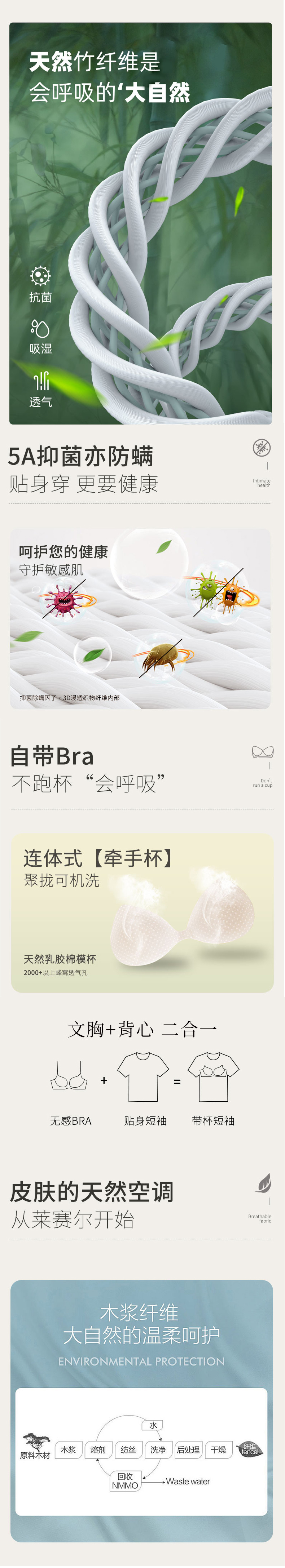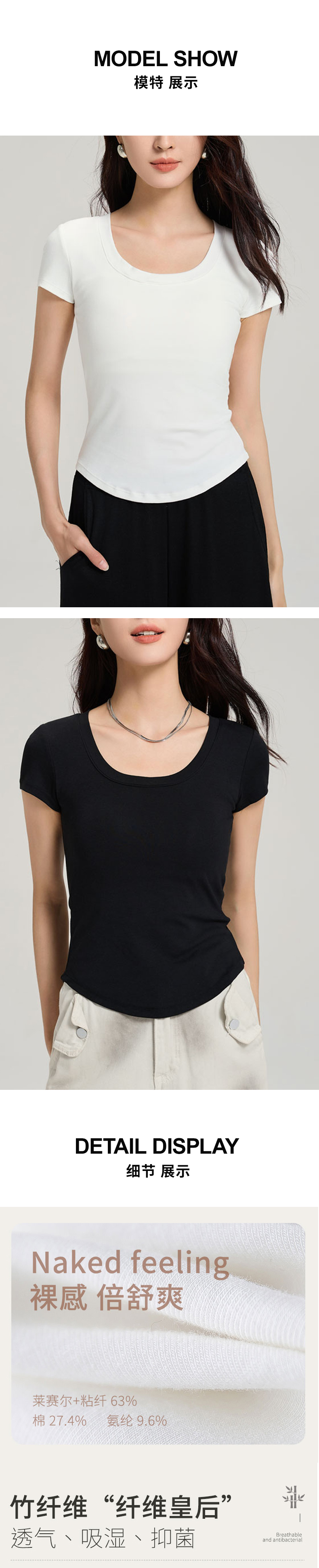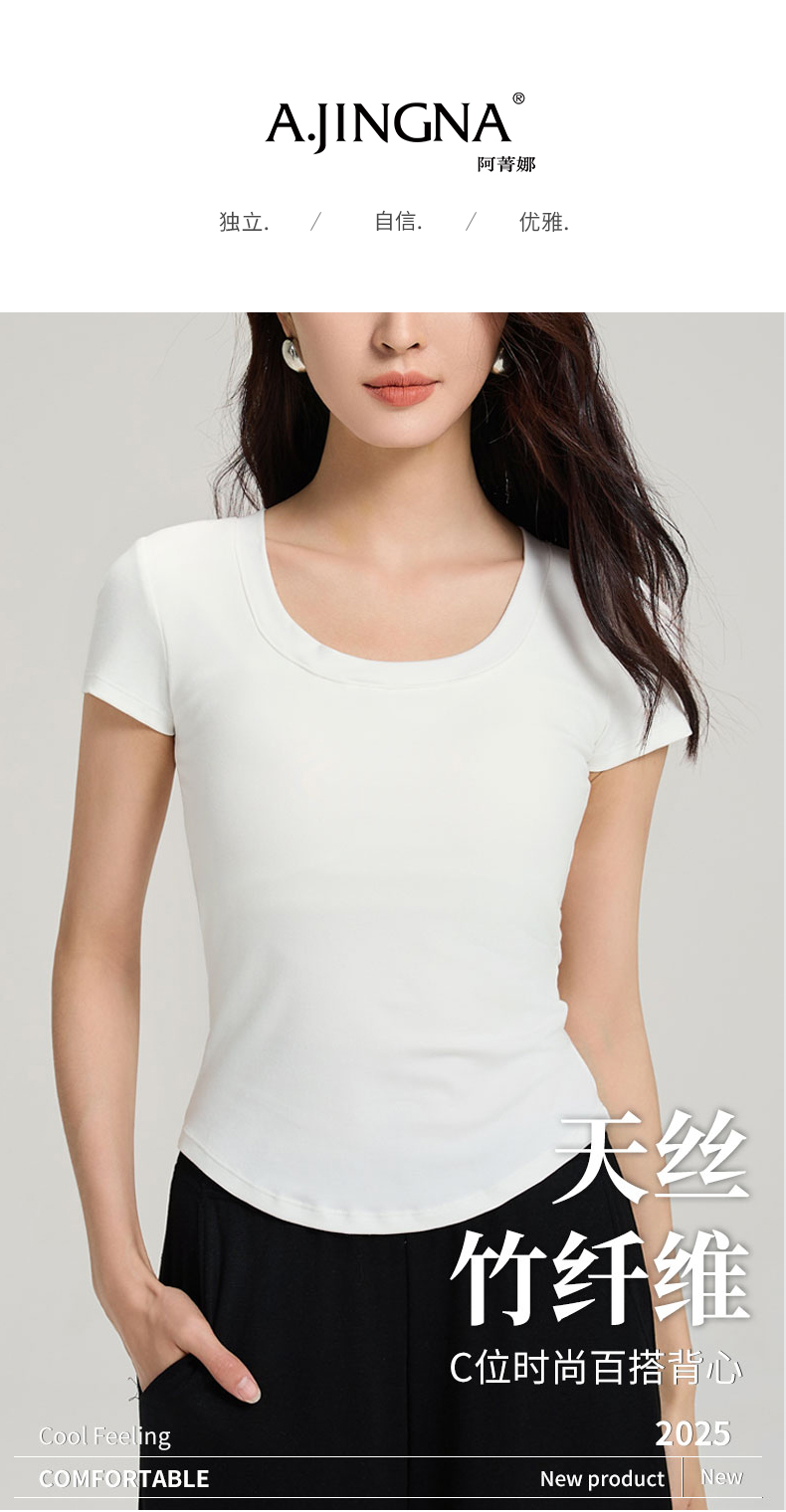 【云感T恤】阿菁娜新款三重复合简约云感T恤莱赛尔竹纤维长绒棉裸肌触感透气抑菌F31C301002