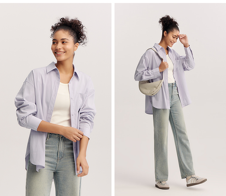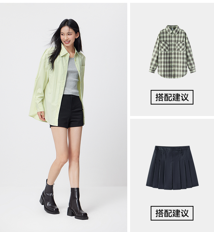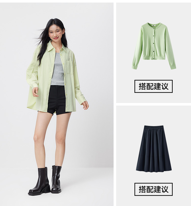 森马长袖衬衫女春oversize肌理中长款衬衣短背心松弛感潮流两件套
