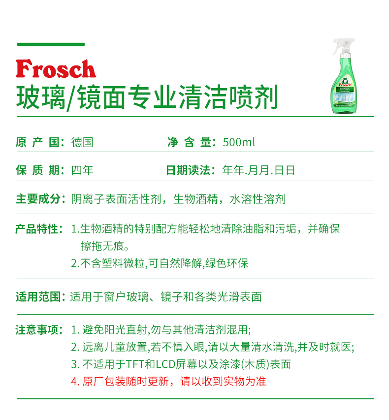 Frosch 玻璃/镜面专业清洁喷剂500ml