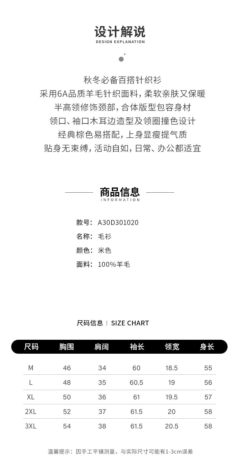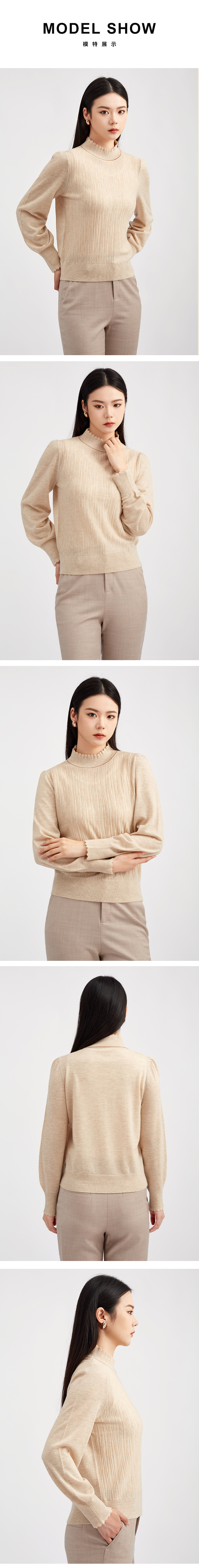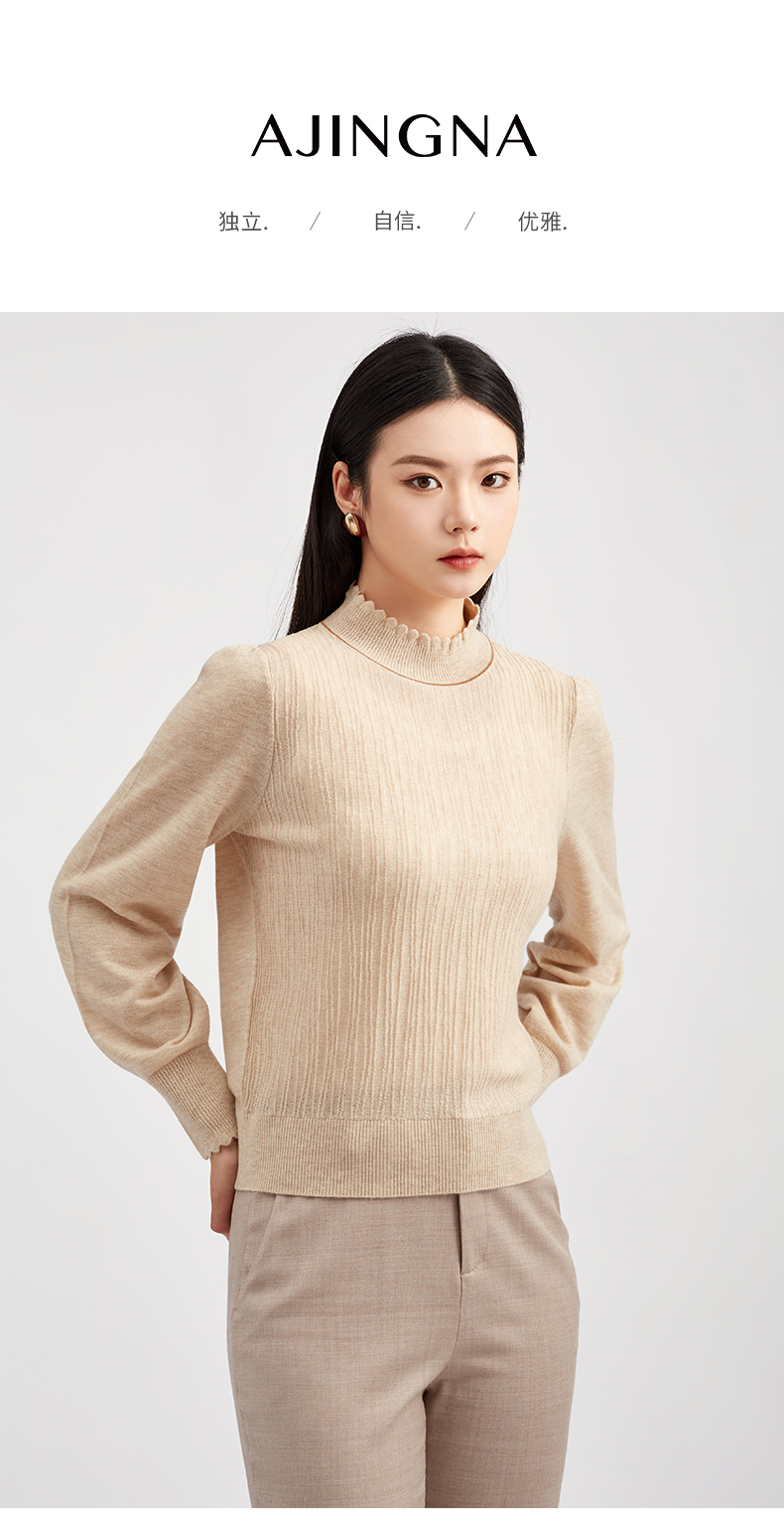 【商场同款】阿菁娜冬季新款木耳领撞色针织衫6A级羊毛修身打底半高领显瘦通勤优雅内搭A30D301020