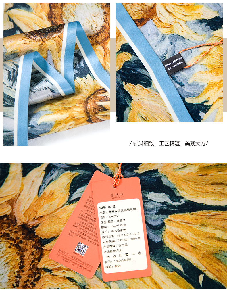 鑫缘 真丝双层素绉缎长巾 HA4692