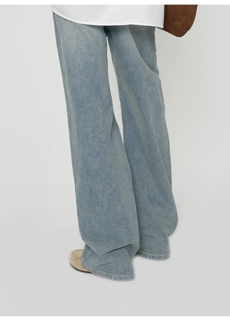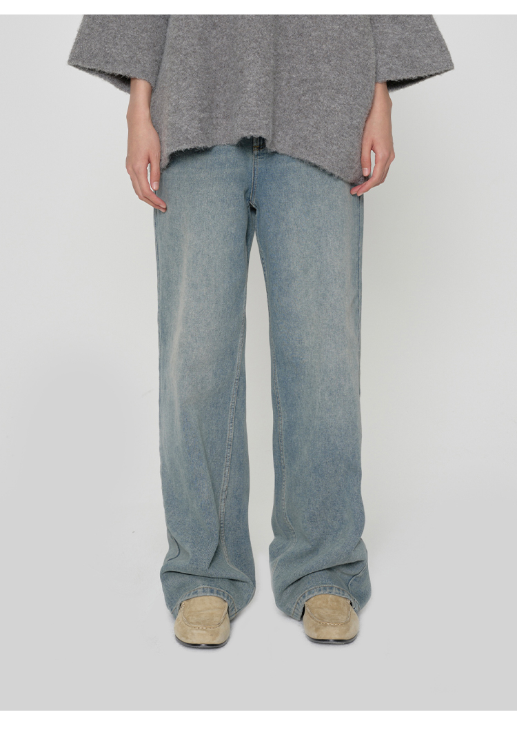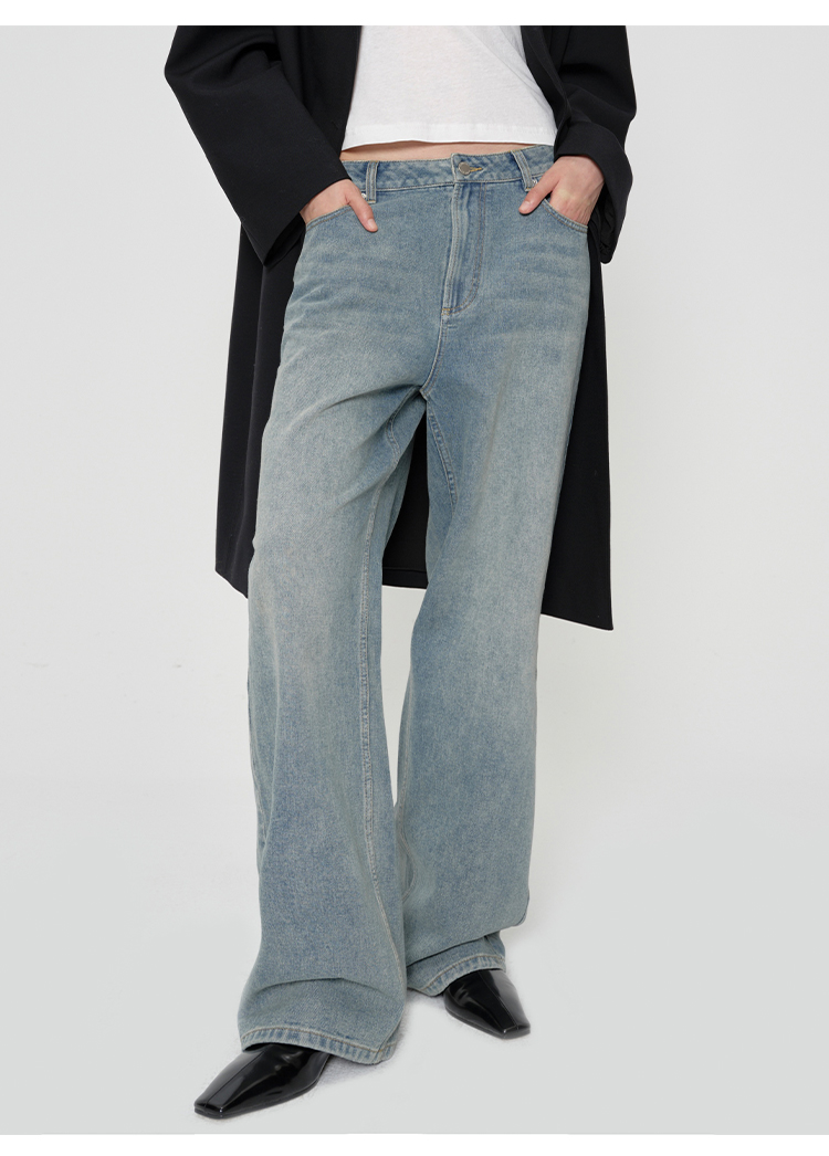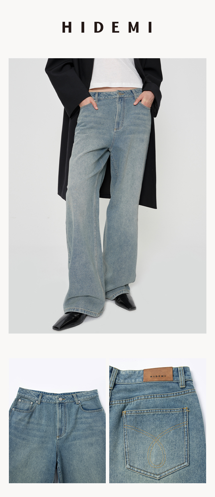HIDEMI 多重水洗复古感做旧蓝灰调中低腰直筒牛仔裤