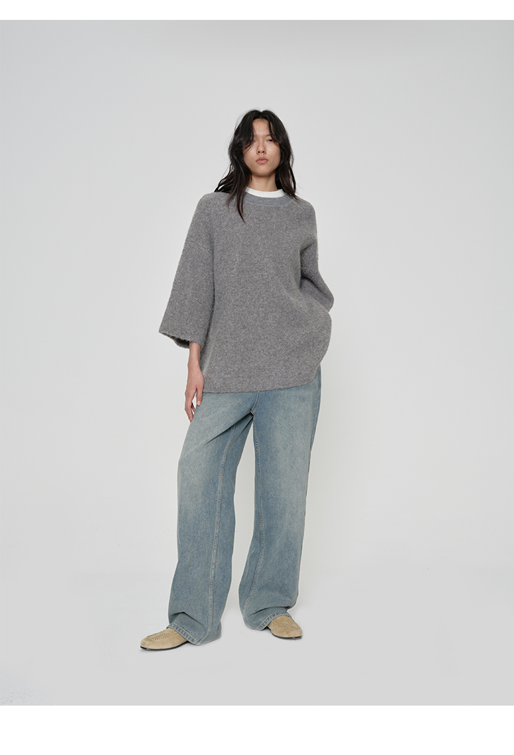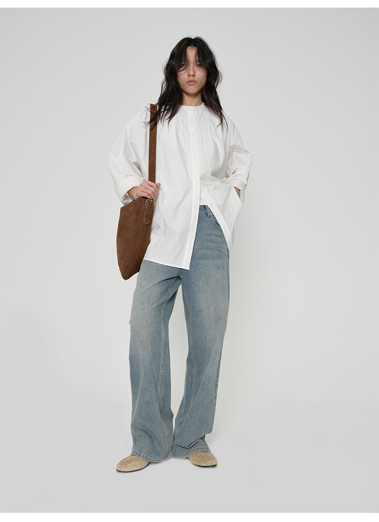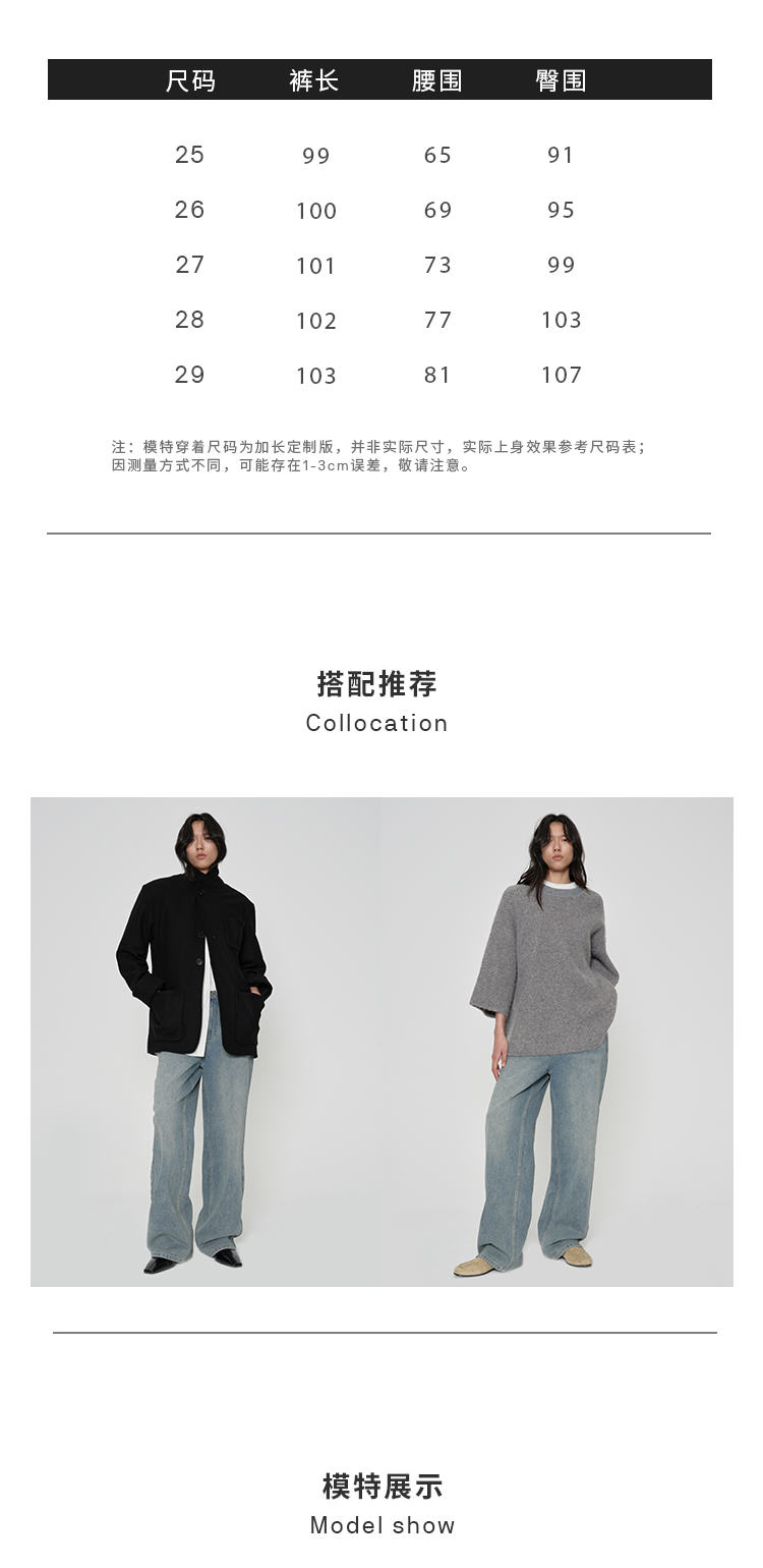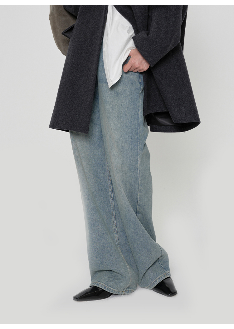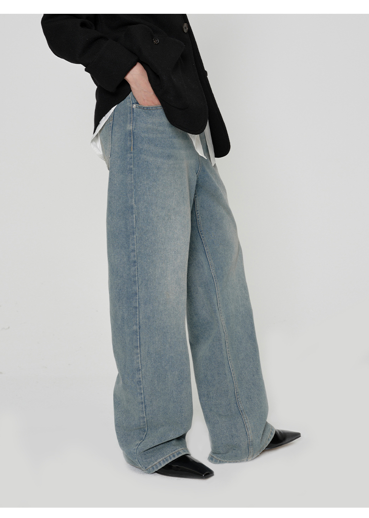 HIDEMI 多重水洗复古感做旧蓝灰调中低腰直筒牛仔裤