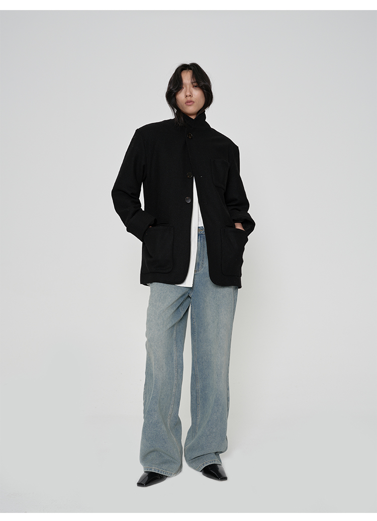 HIDEMI夜灰色简约不对称设计感一粒扣阔腿裤