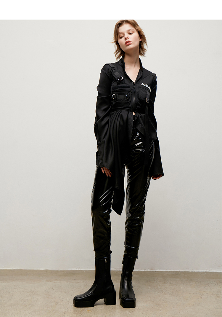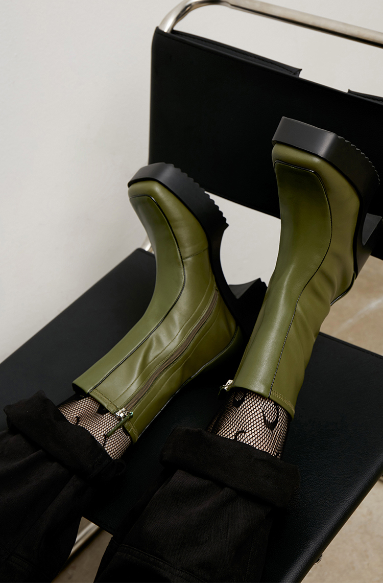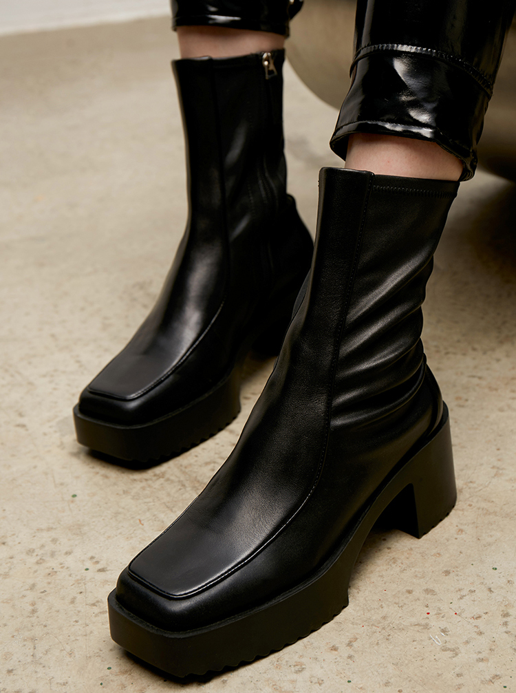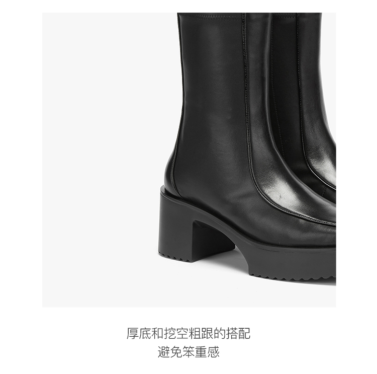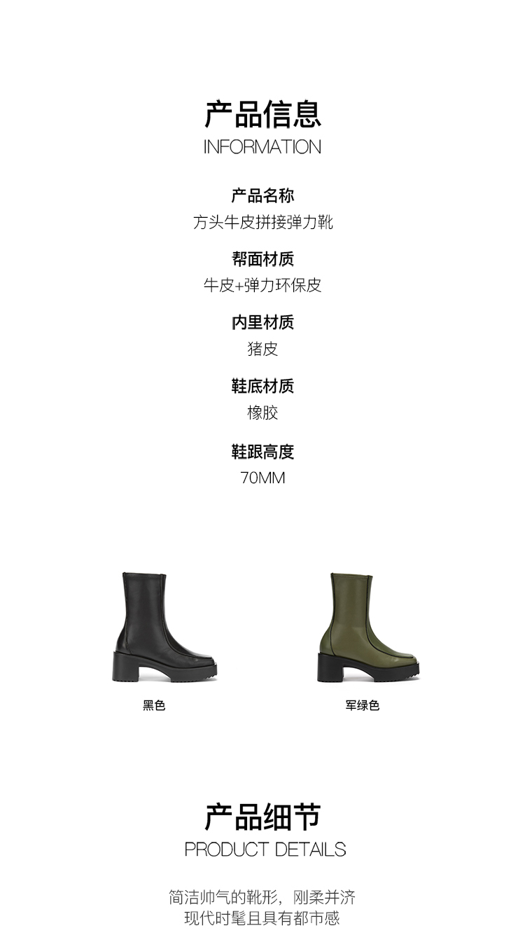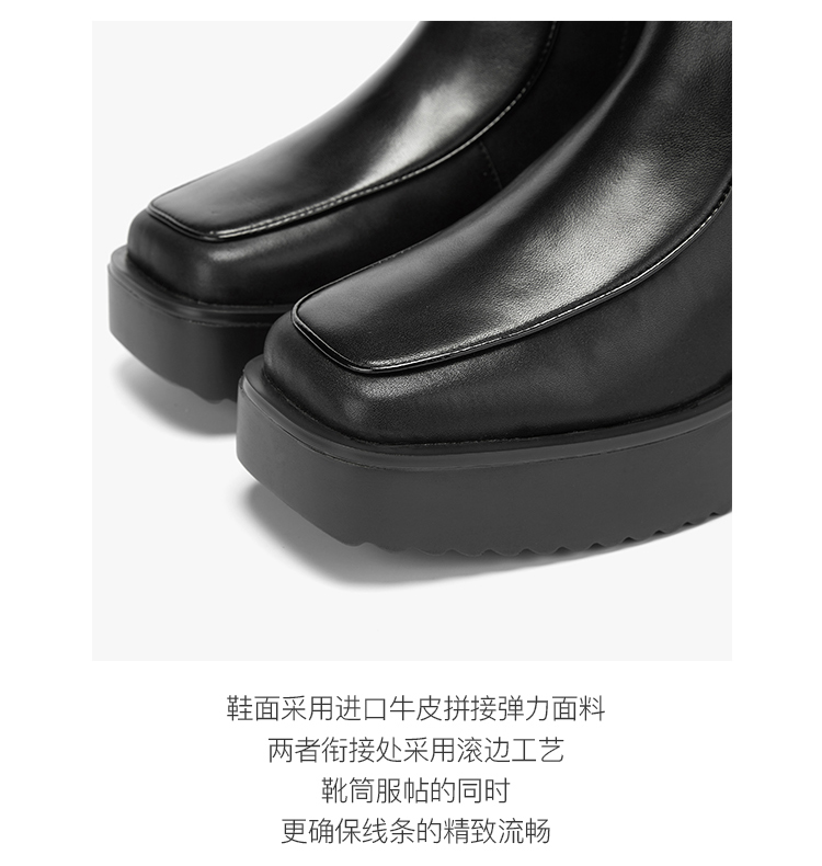 lost in echo 原创设计师品牌 方头牛皮拼接弹力靴