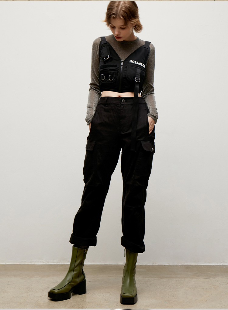 [福利价]lost in echo2024秋冬新款时尚牛皮方头扣饰直筒机车靴子长筒靴女