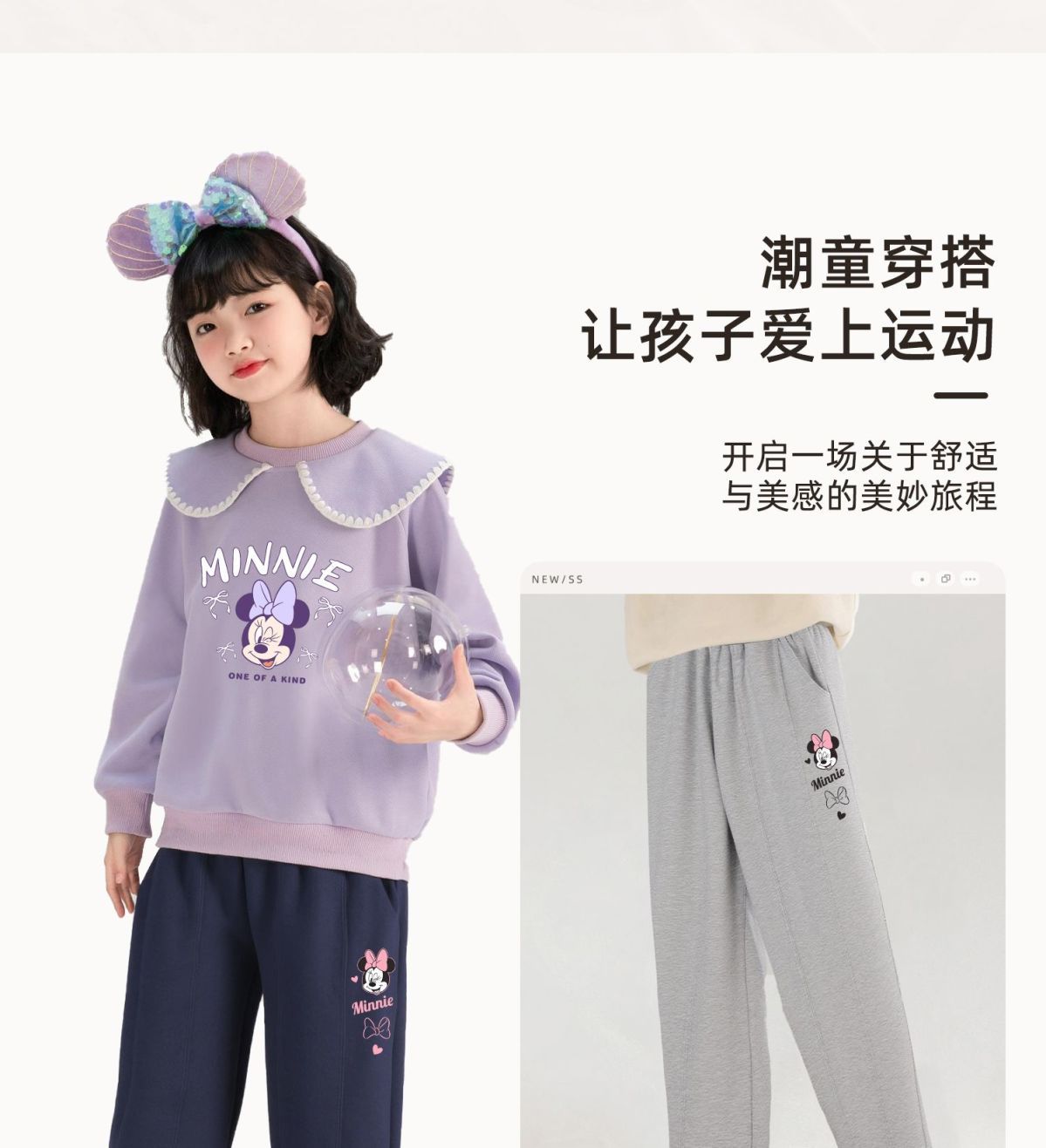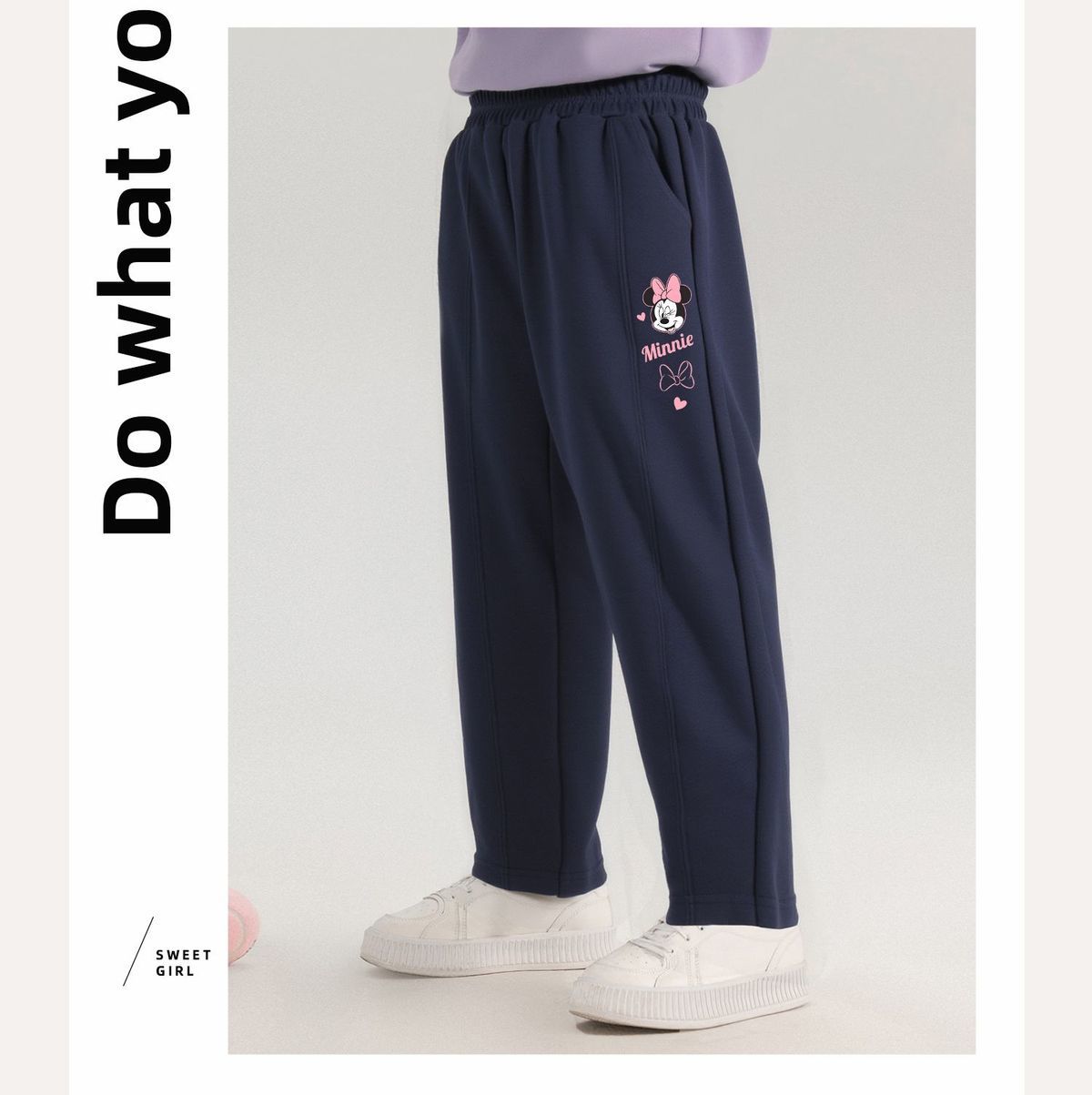 迪士尼女童加绒加厚裤子2022新款冬季儿童保暖裤秋冬女大童棉裤潮