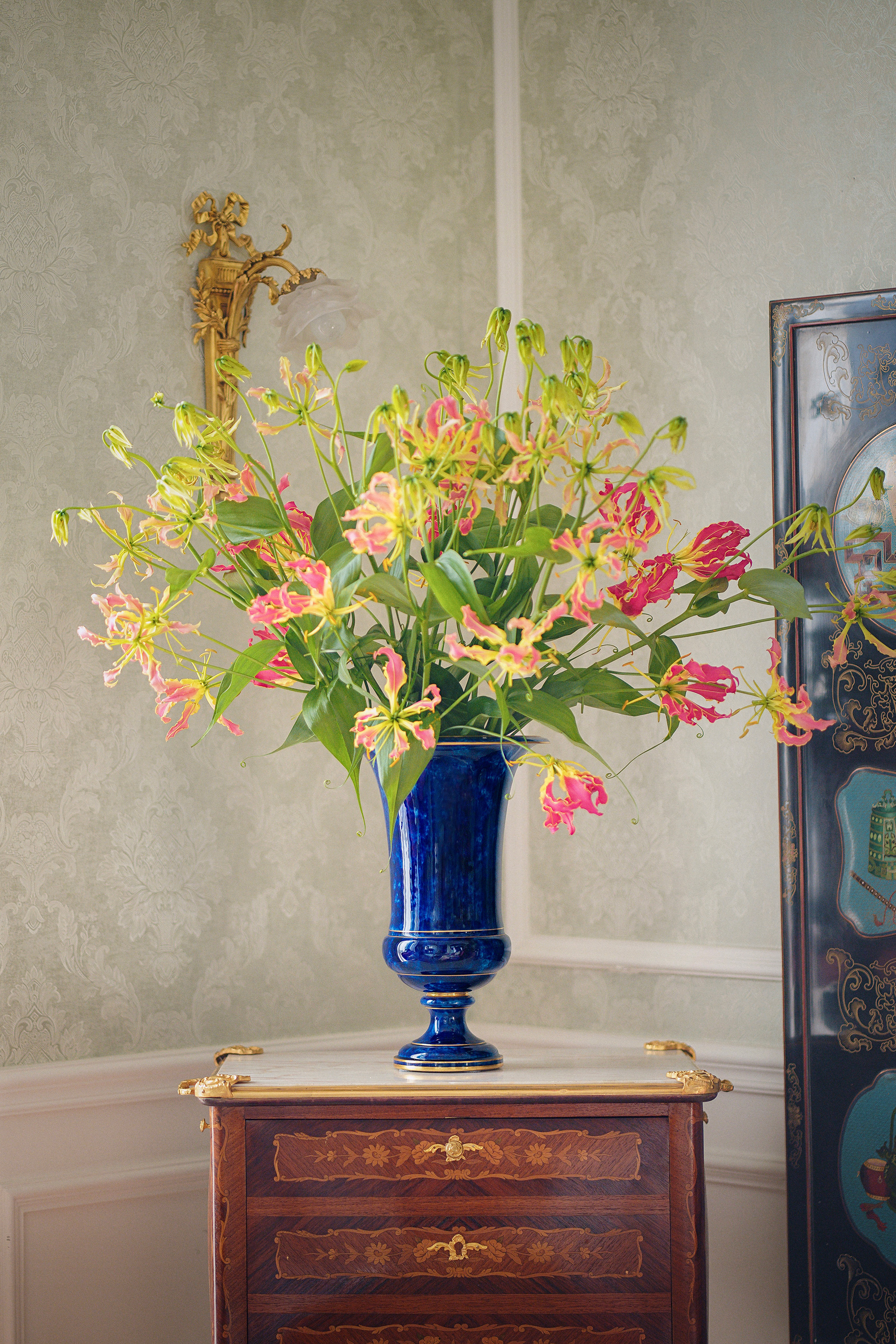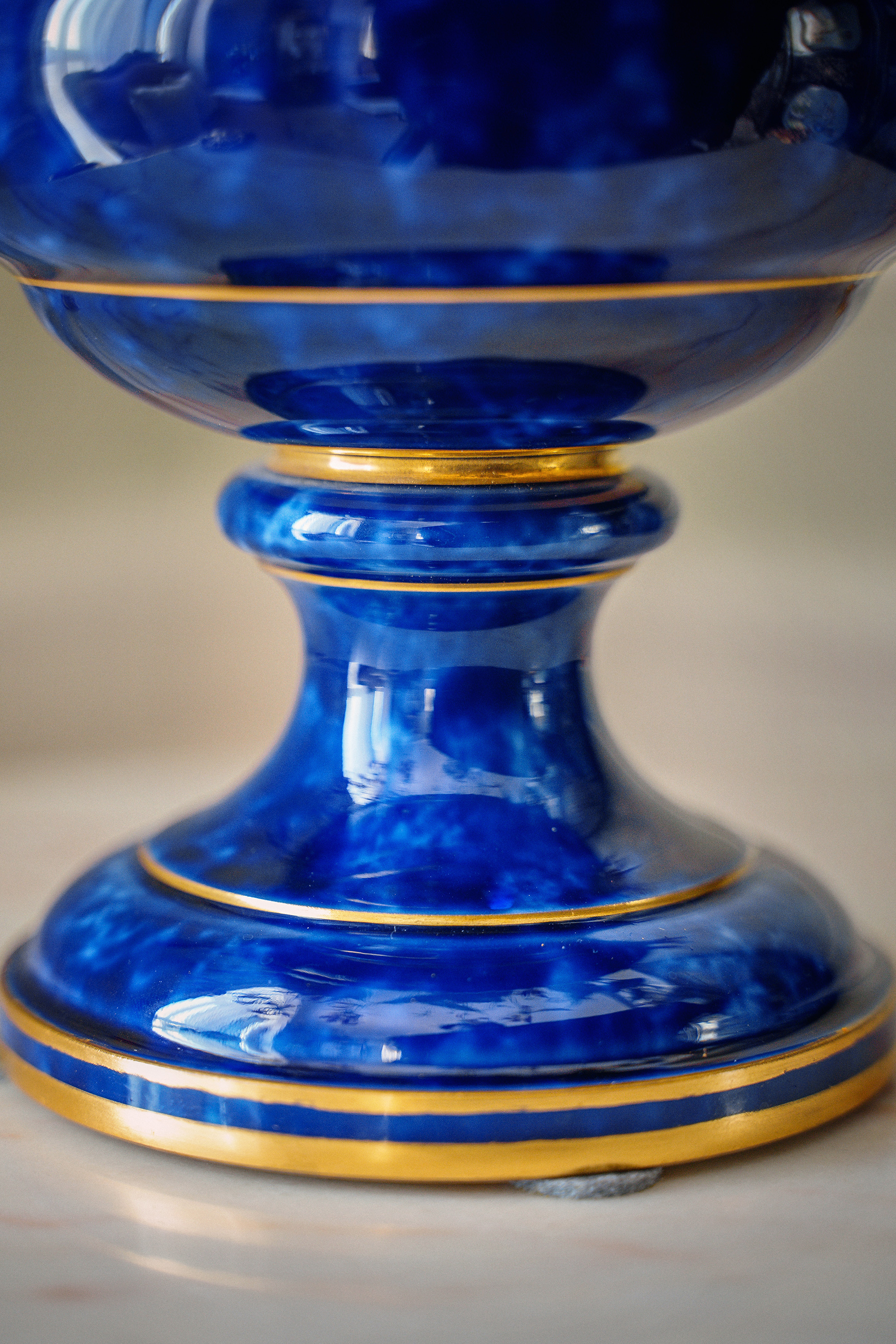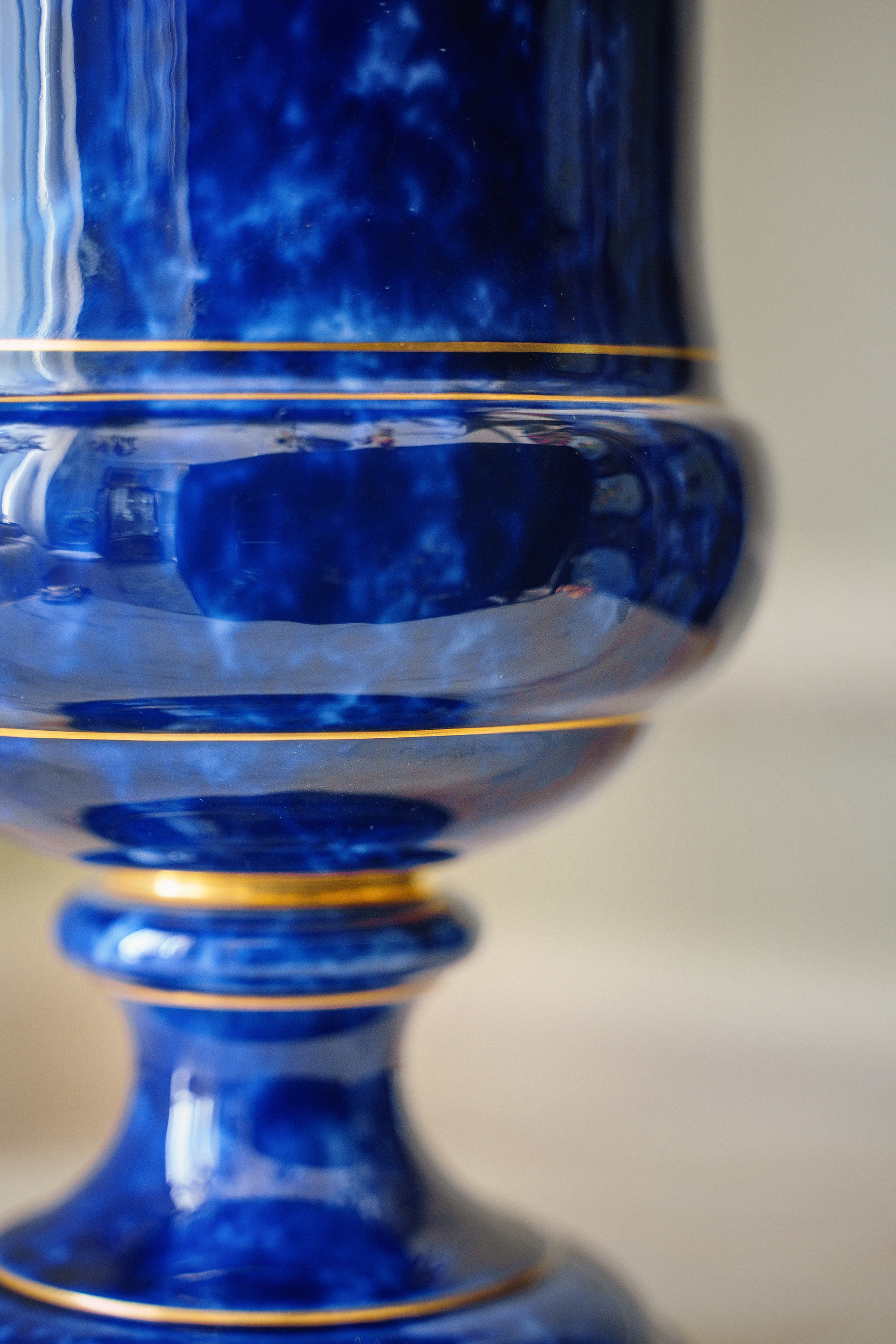 1887-1895年代法国御窑塞弗尔签名出品手绘描金装饰云朵蓝釉美第奇樽造型瓷花瓶