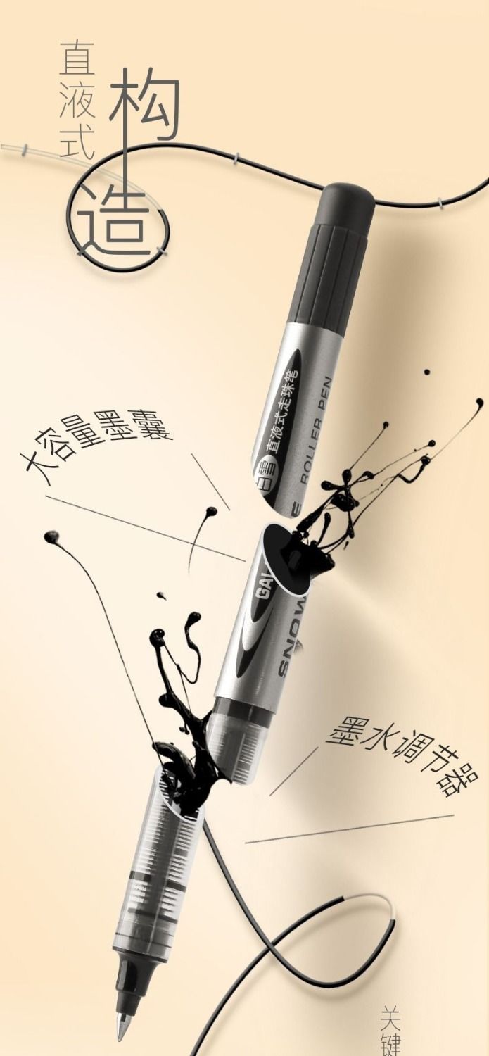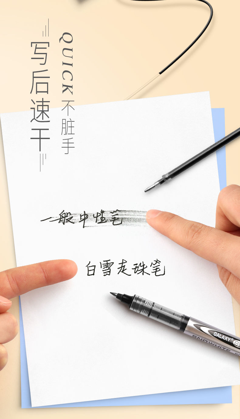 【白雪直液走珠签字字】白雪直液式走珠笔0.5mm黑色蓝色红色签字水笔学生考试红办公中性笔