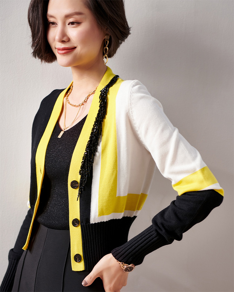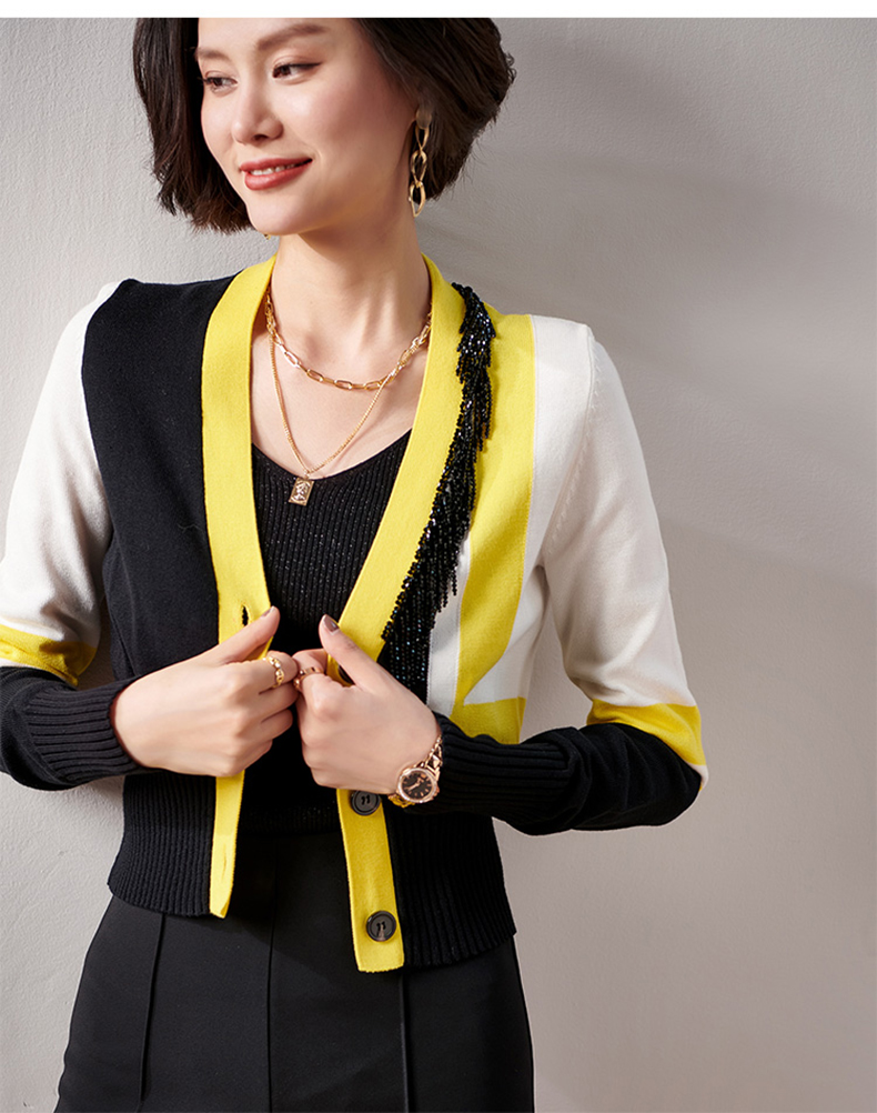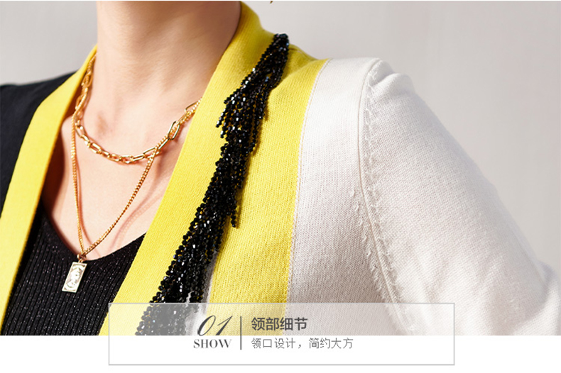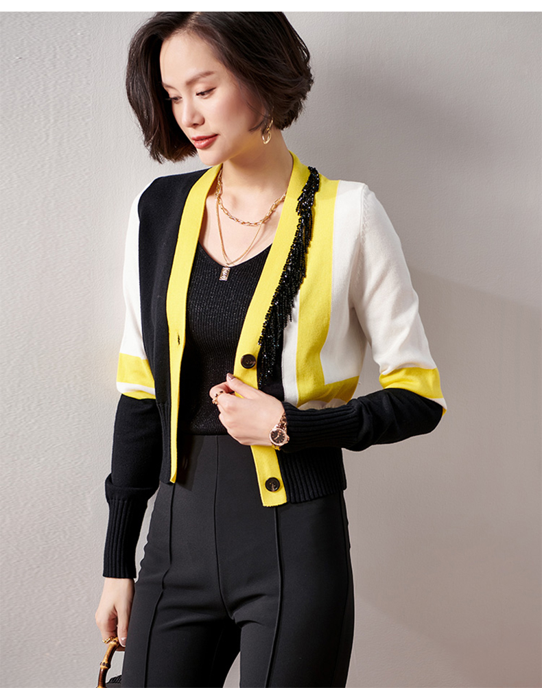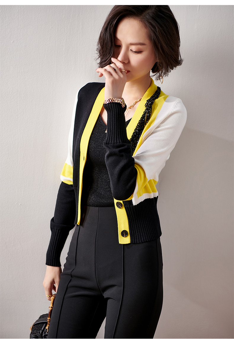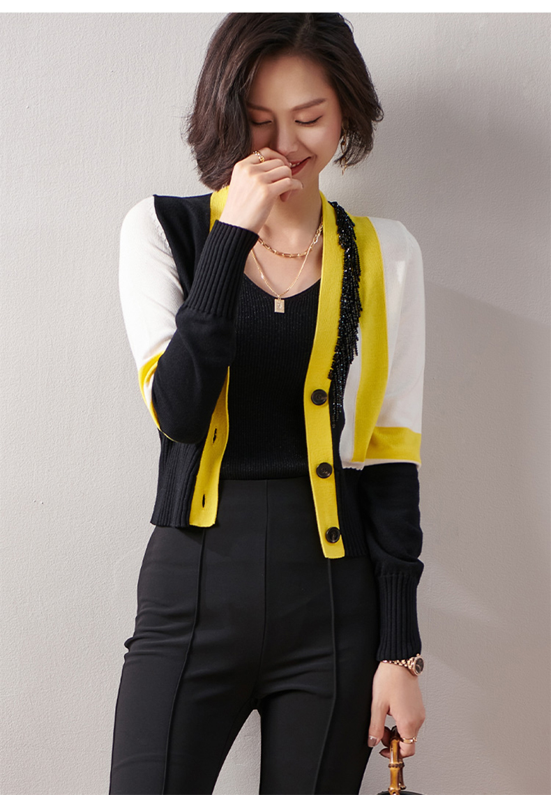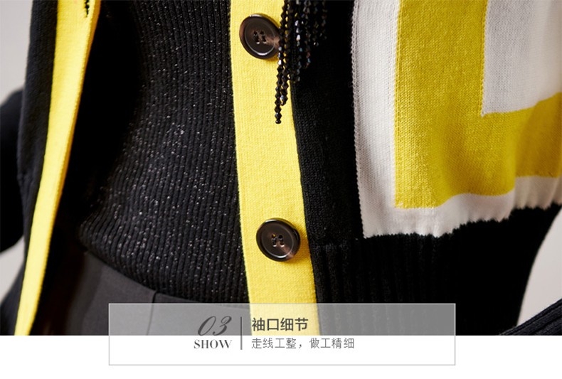 剩XXL 芳外春季新款时尚拼色女式针织衫修身显瘦长袖开衫外套女0022