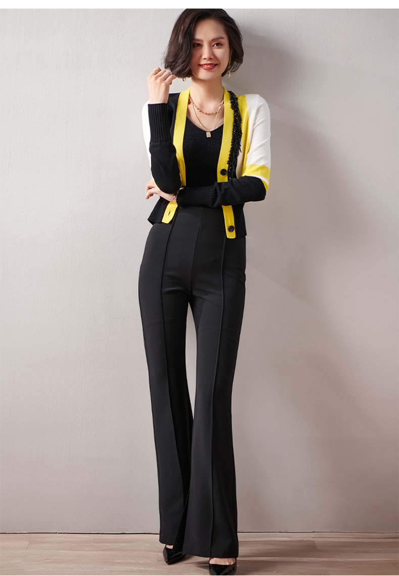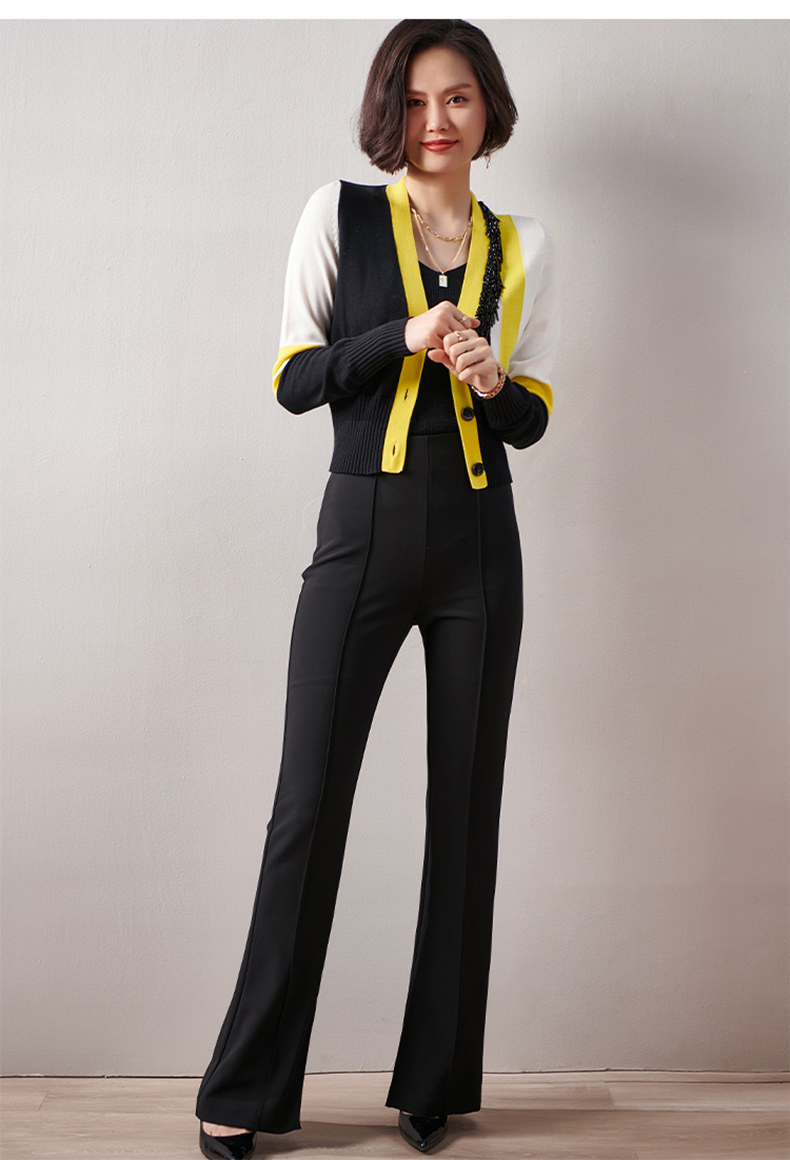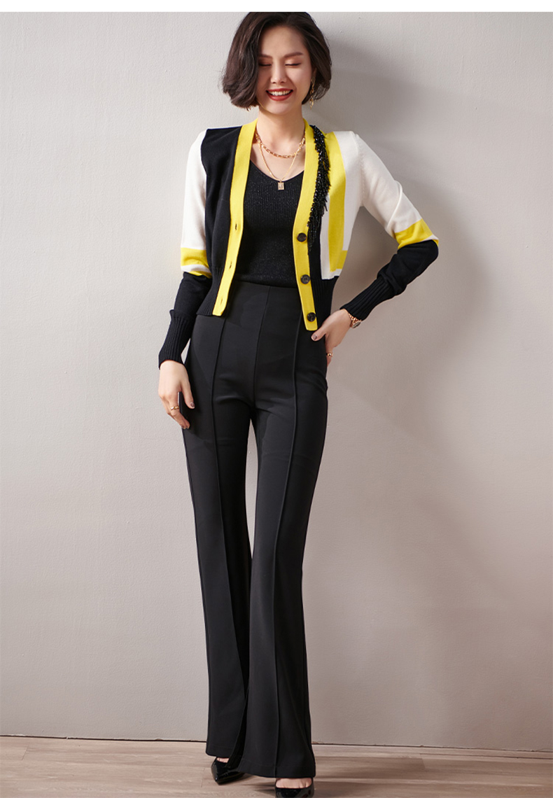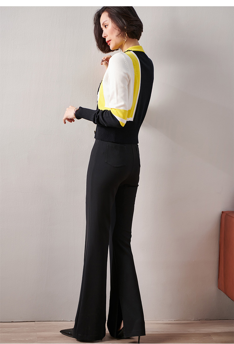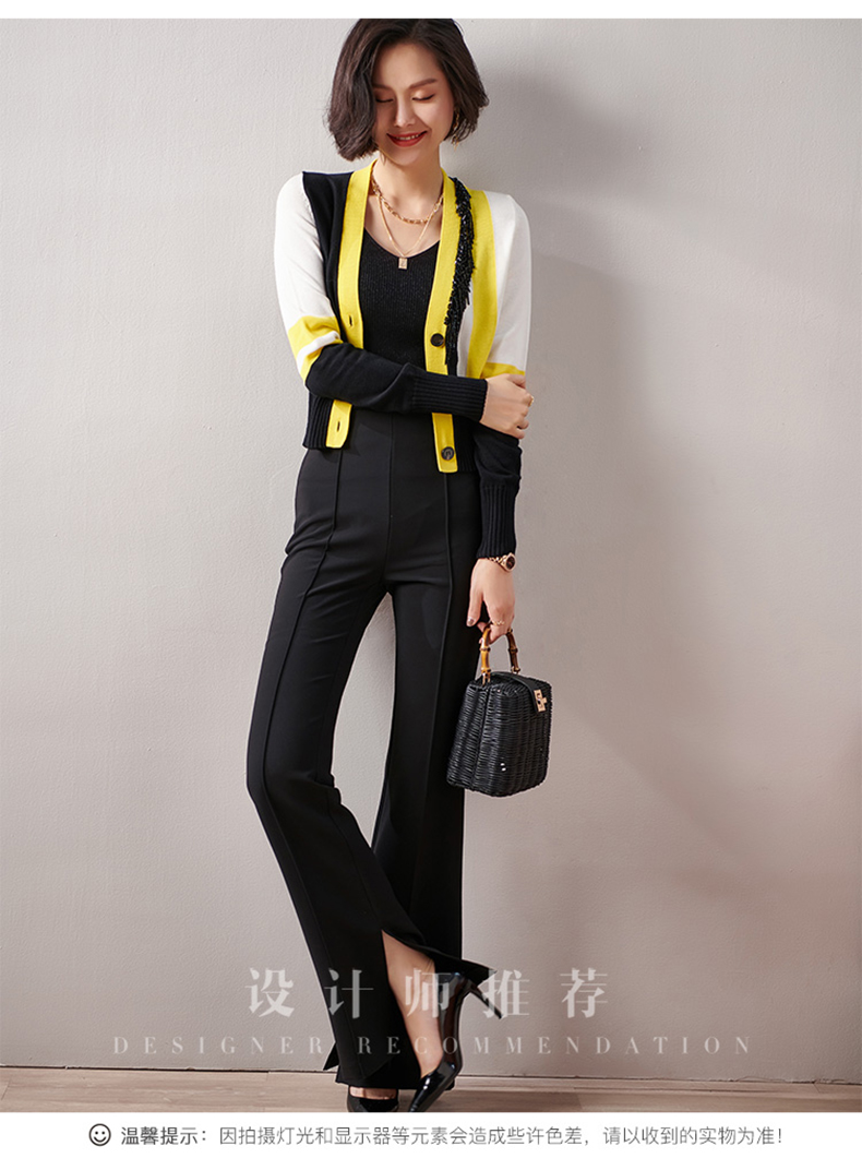剩XXL 芳外春季新款时尚拼色女式针织衫修身显瘦长袖开衫外套女0022