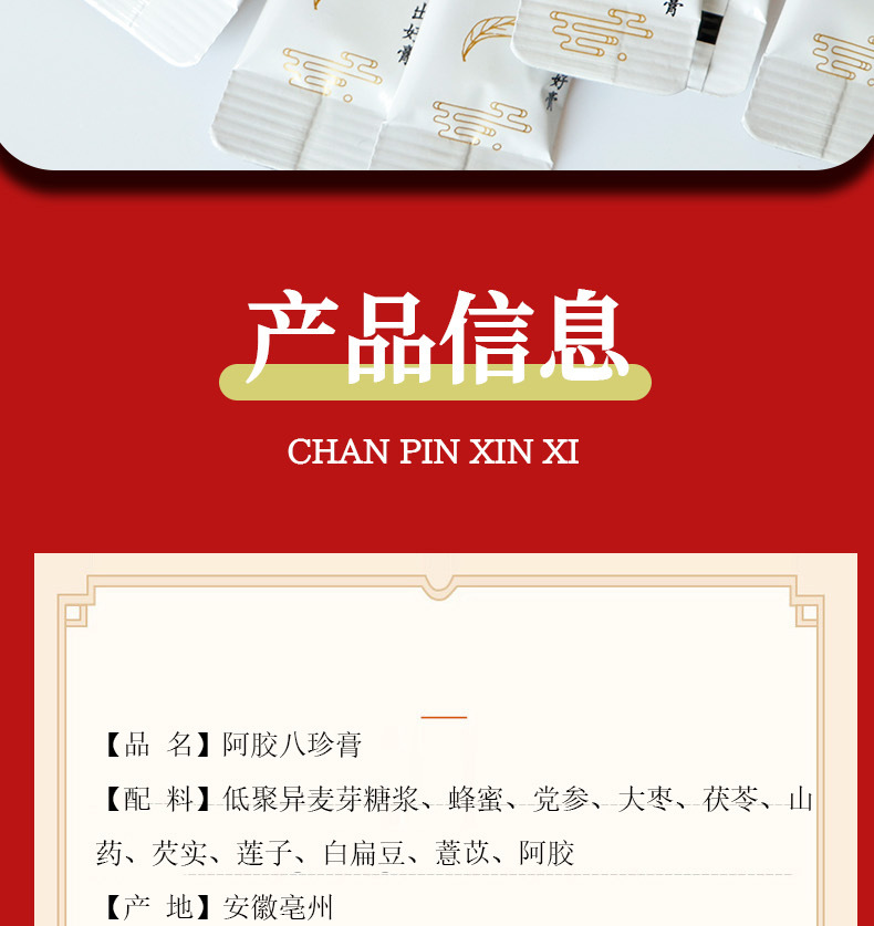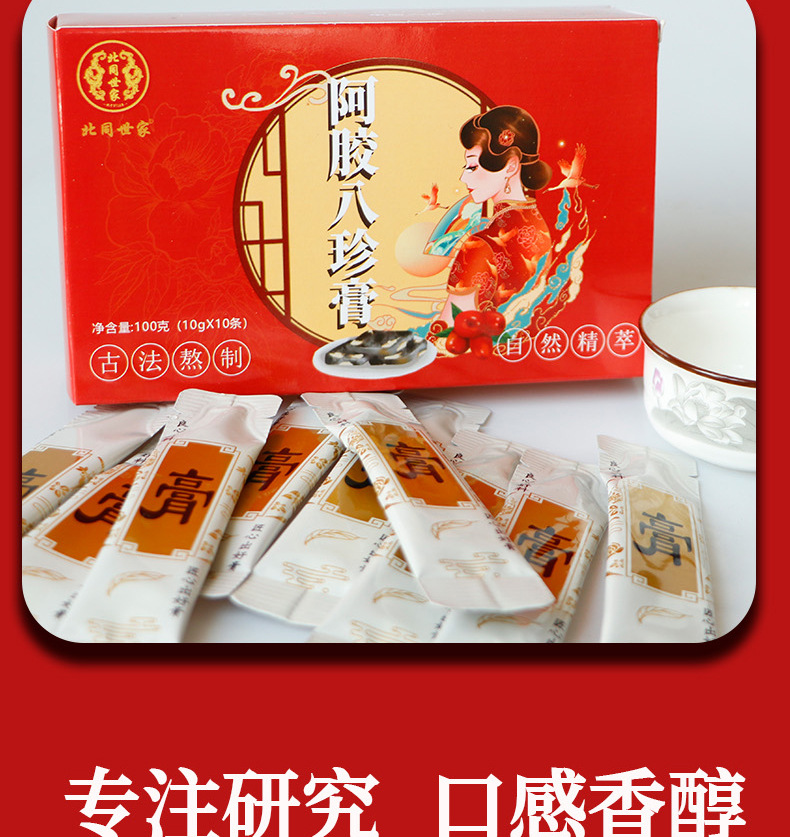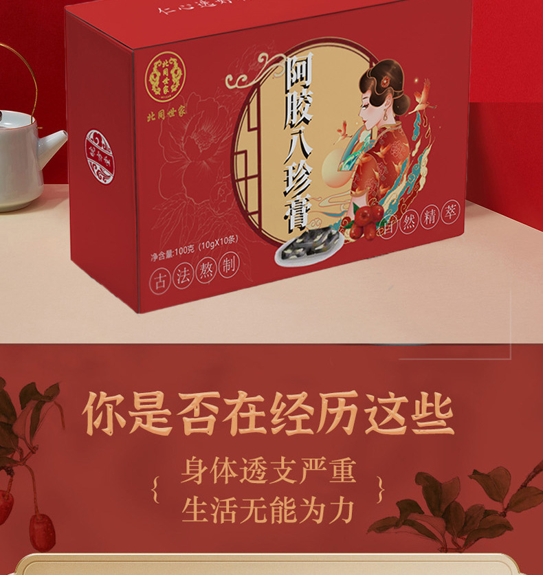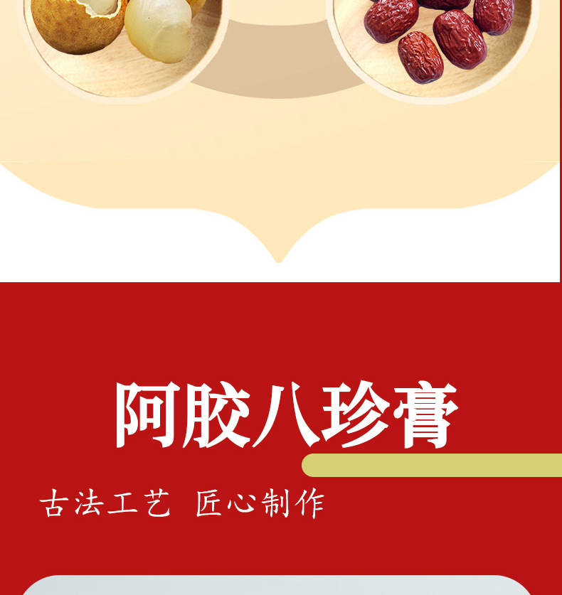 【买一送一❗️阿胶八珍育颜膏】甄选品质原料制作,蜂蜜/党参/大枣/茯苓/山药/芡实/莲子/白扁豆/薏苡/阿胶等,大姨妈女性膏滋盒装小条人参育颜膏L