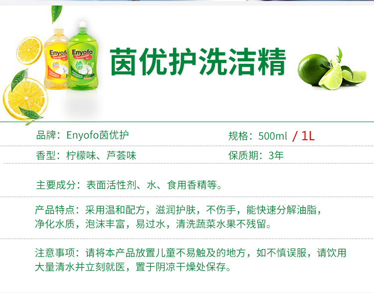 【中欧班列精选3瓶】 澳洲果蔬餐盘洗洁精 原装进口澳洲茵优护芦荟柠檬不伤手洗洁精 500ml/瓶