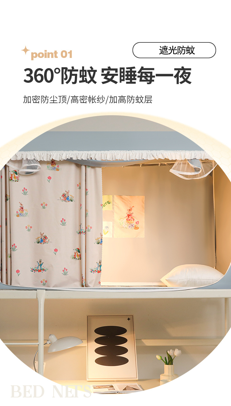 【YW】无忧购【开学好物】学生宿舍一体式遮光床帘蚊帐寝室单人上下铺通用(截单后3-5天发货)