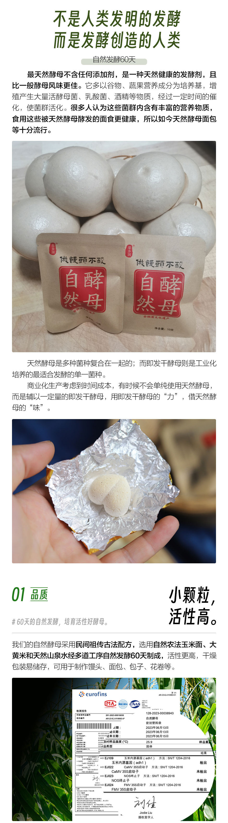 【温馨提示】: 不低于20度是自然酵母(益生菌活性)发酵的主要条件,常温低于20度时,可以使用“发酵箱”首次发酵和二次醒发。