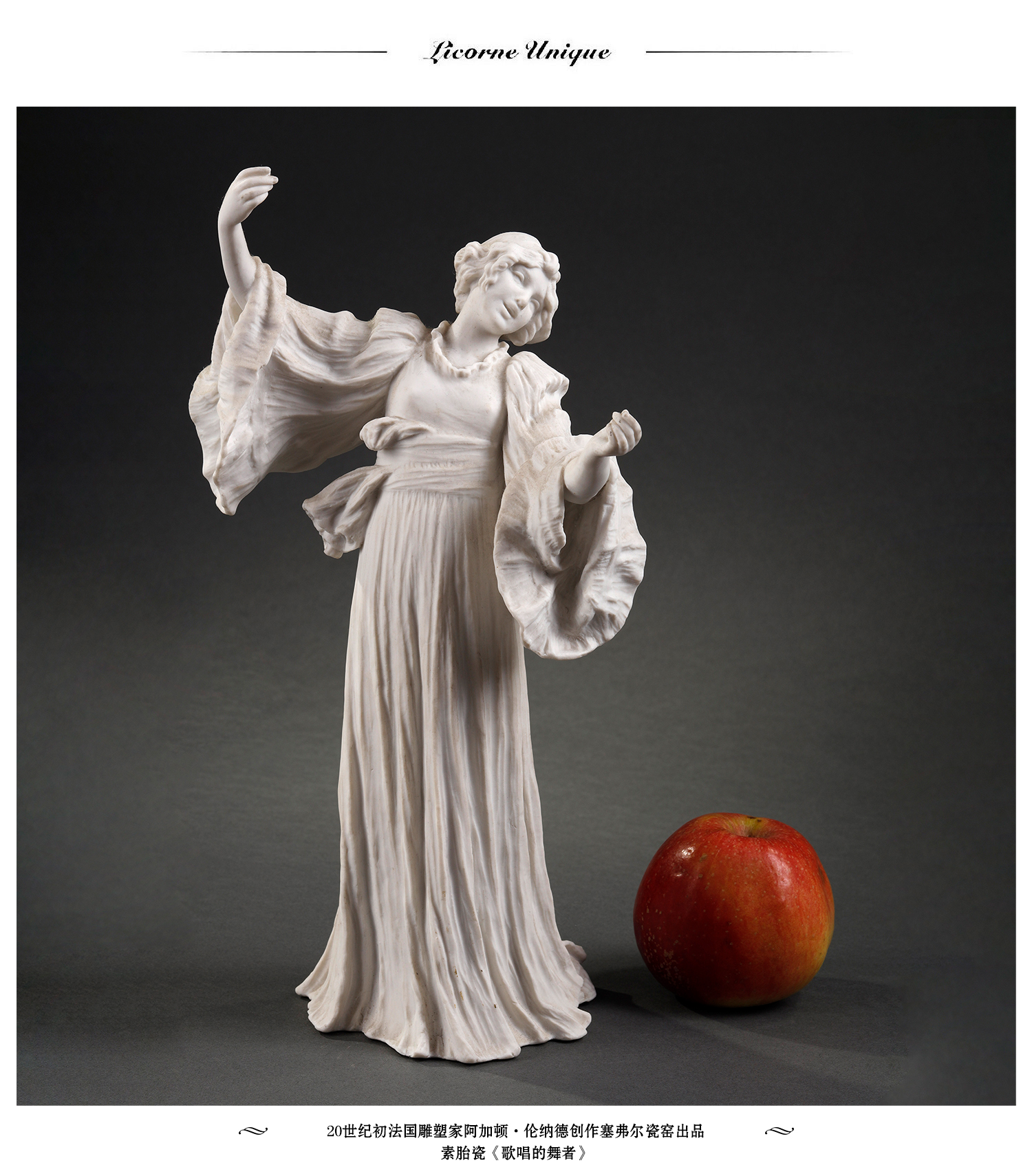 独角鹿西洋古董法国雕塑家创作塞弗尔瓷窑素胎瓷雕塑歌唱的舞者