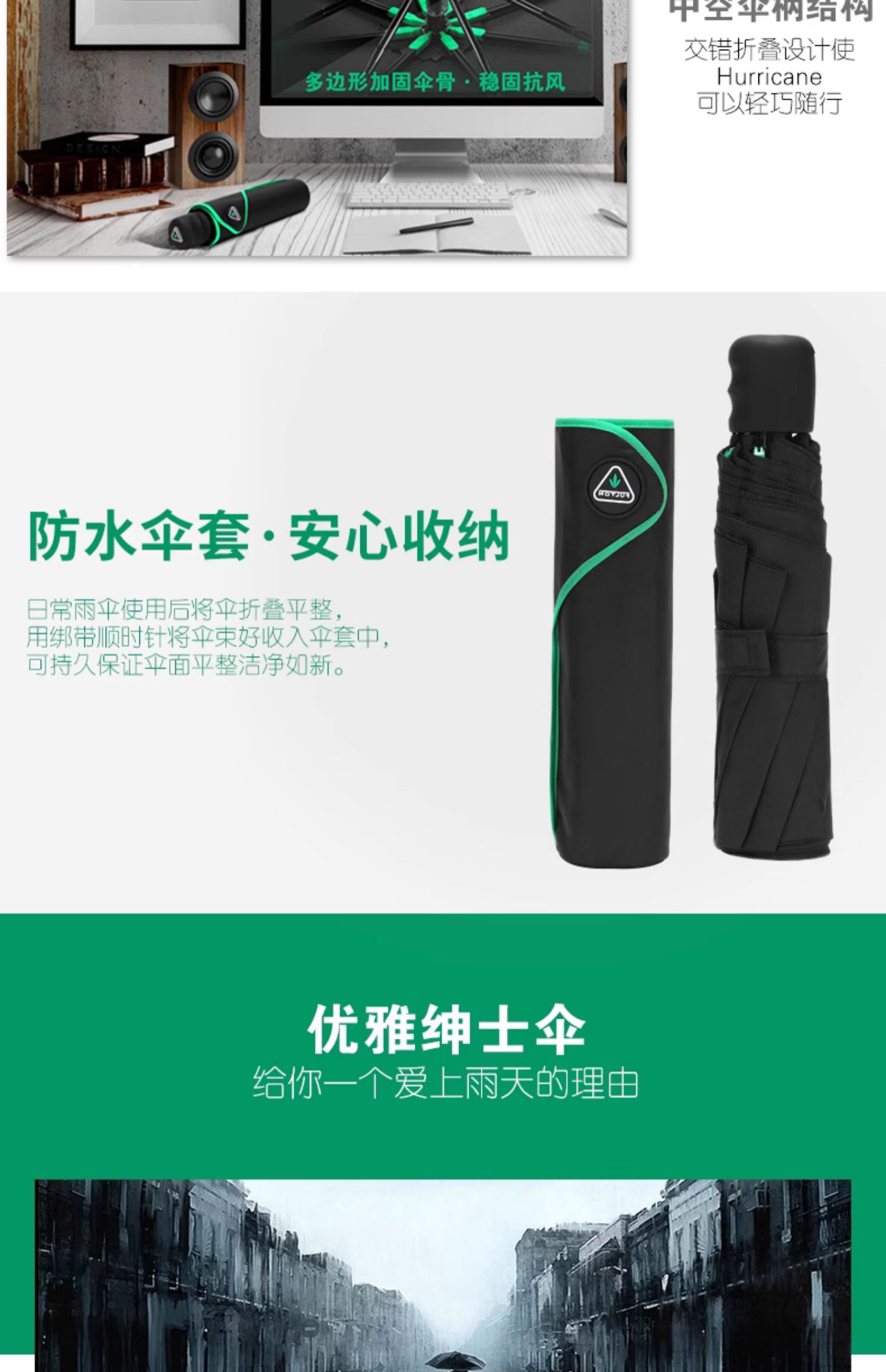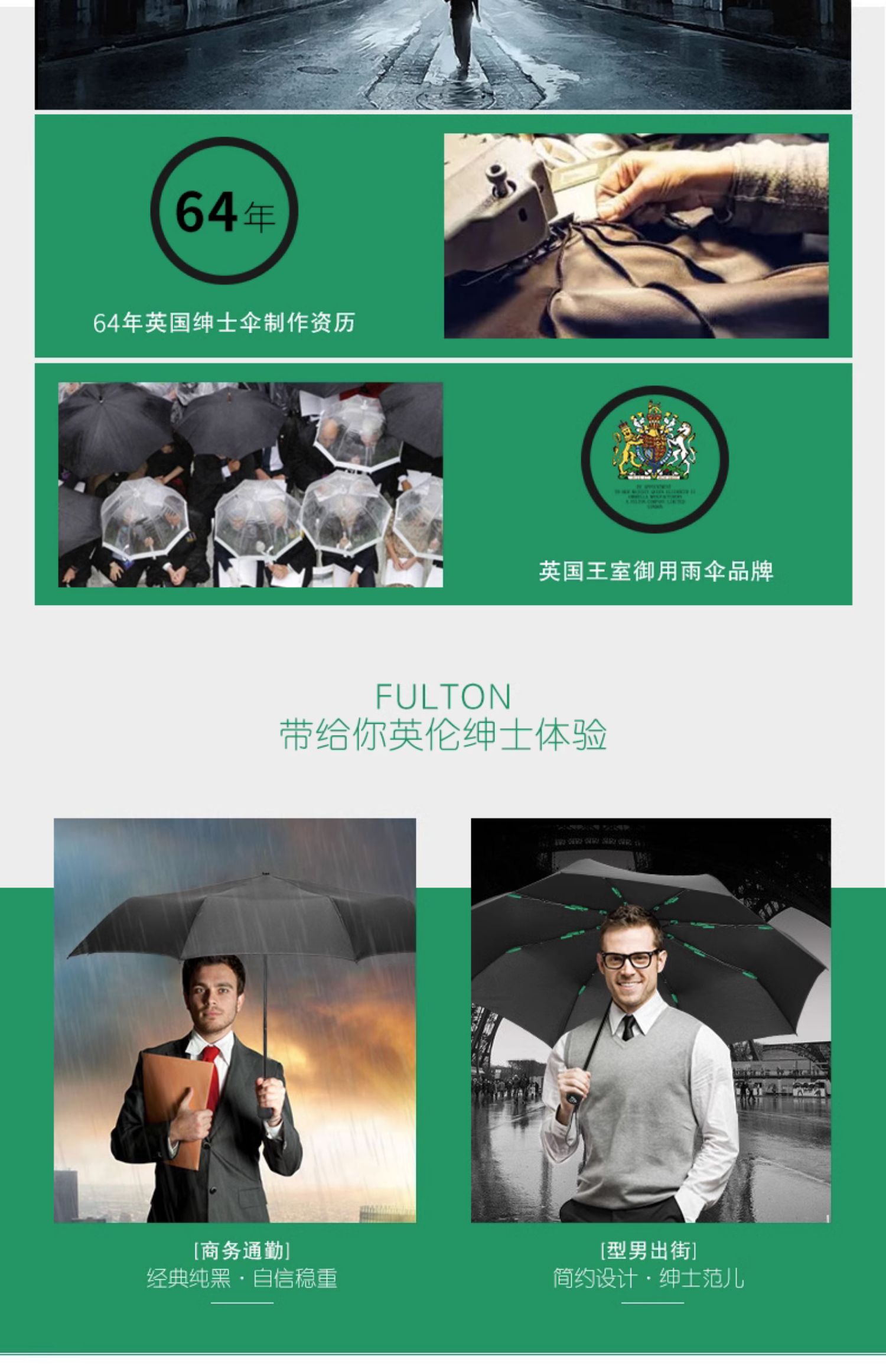 英国FULTON富尔顿 Hurricane Black 黑色商务便携折叠伞 MFHC5