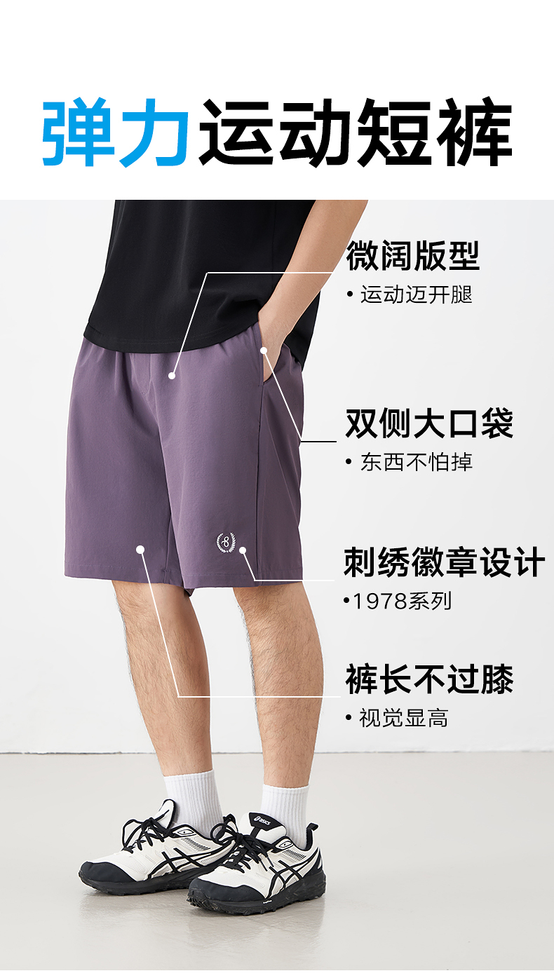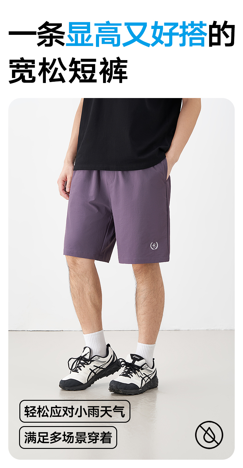 GXG男装 肌理感休闲短裤织带运动短裤 24年夏G24X222010