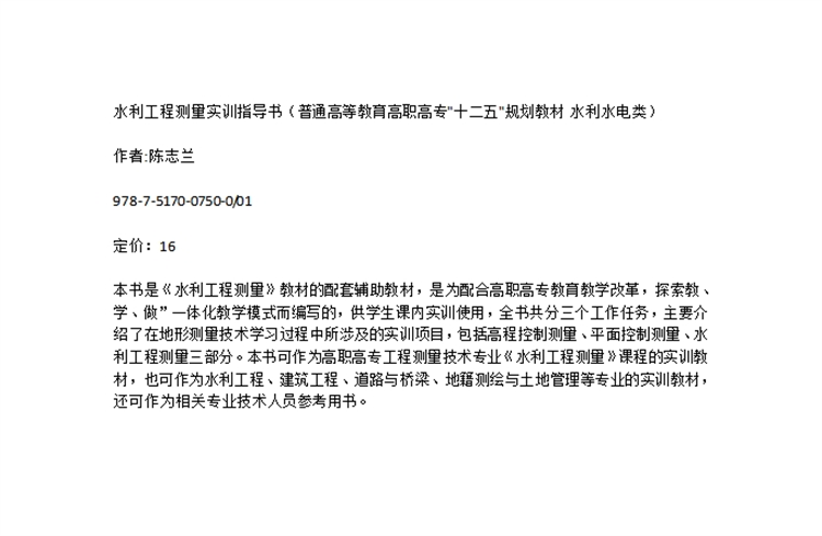 水利工程测量实训指导书(普通高等教育高职高专"十二五"规划教材 水利水电类)