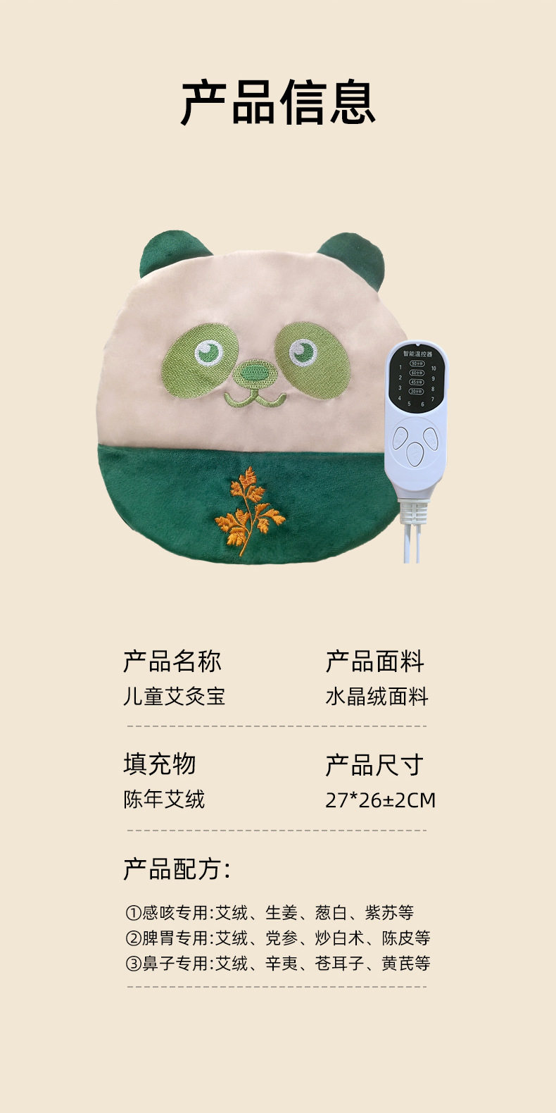 【儿童专用艾草敷包】2026年小熊猫儿童热敷包 艾灸热敷背部肚子脾胃 艾灸热敷包