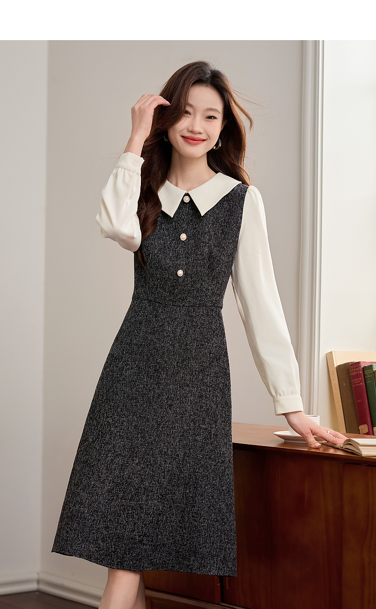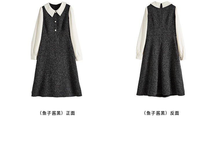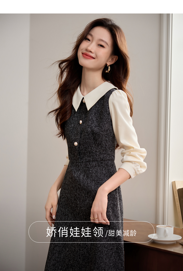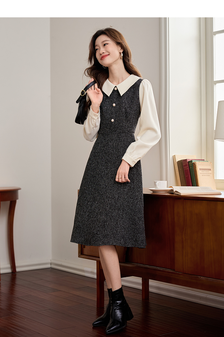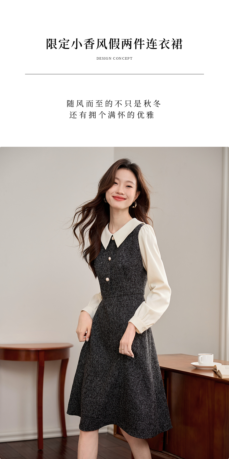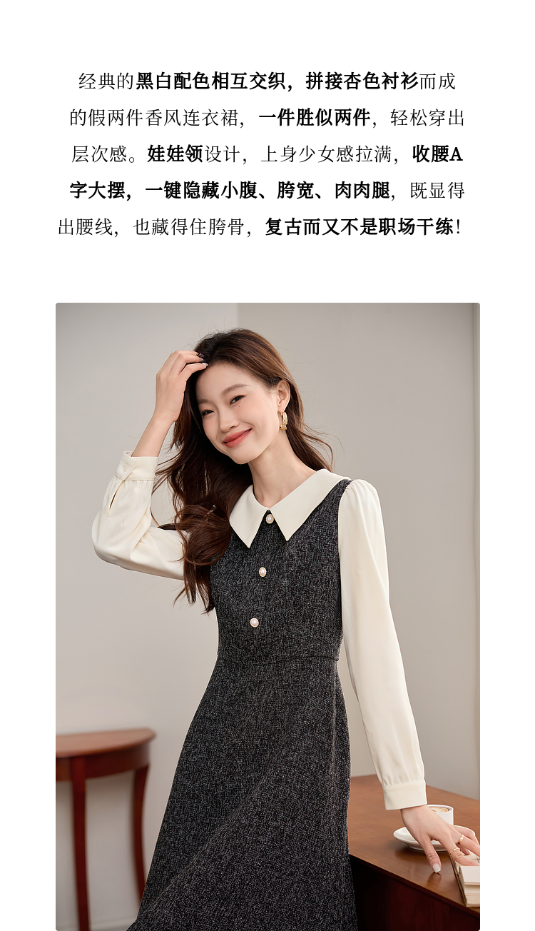 【149元福袋,不支持退换】熙世界小香风假两件连衣裙女秋冬季新款娃娃衬衫领拼接粗花呢裙子