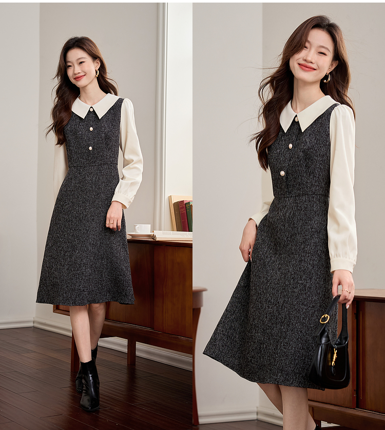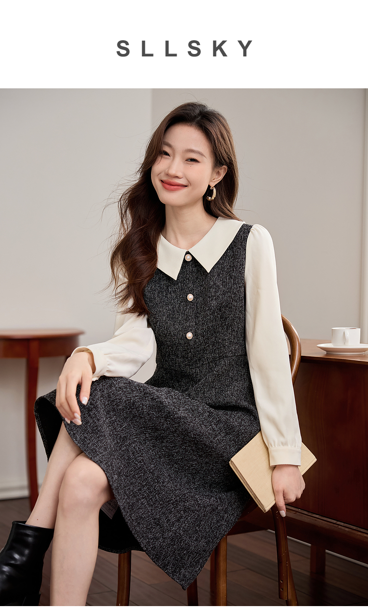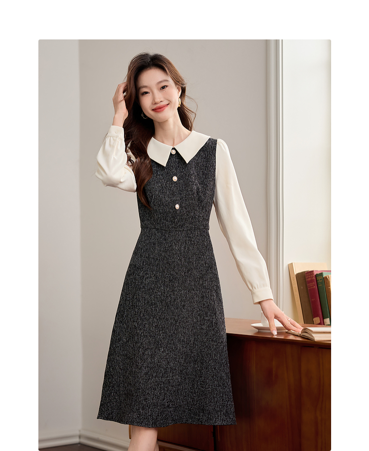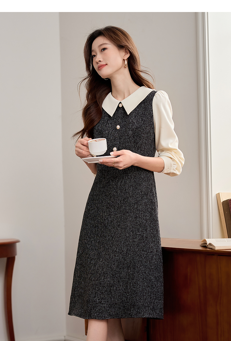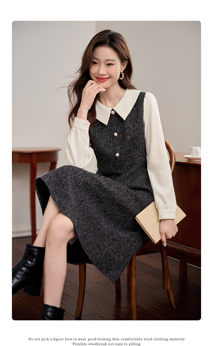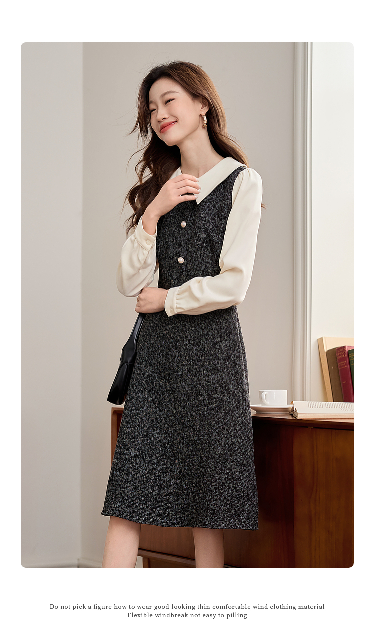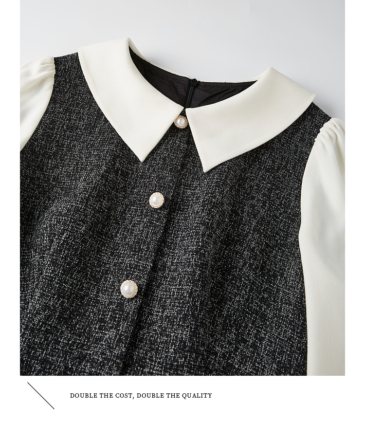 【149元福袋,不支持退换】熙世界小香风假两件连衣裙女秋冬季新款娃娃衬衫领拼接粗花呢裙子