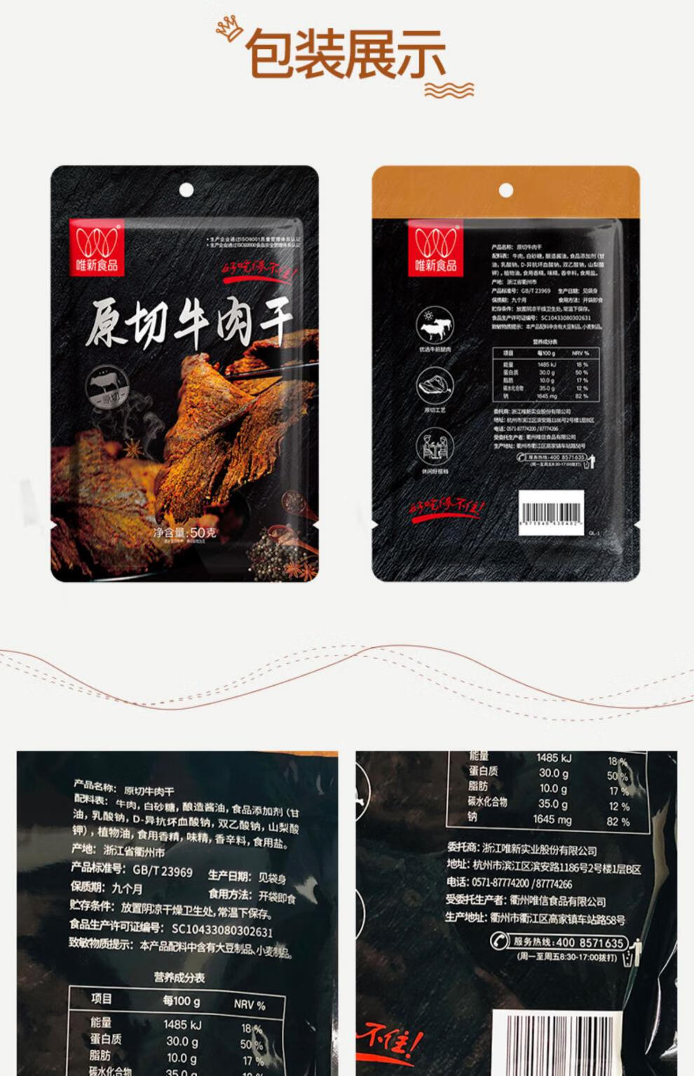 唯新50g牛肉干 手撕肉脯肉干零食休闲食品