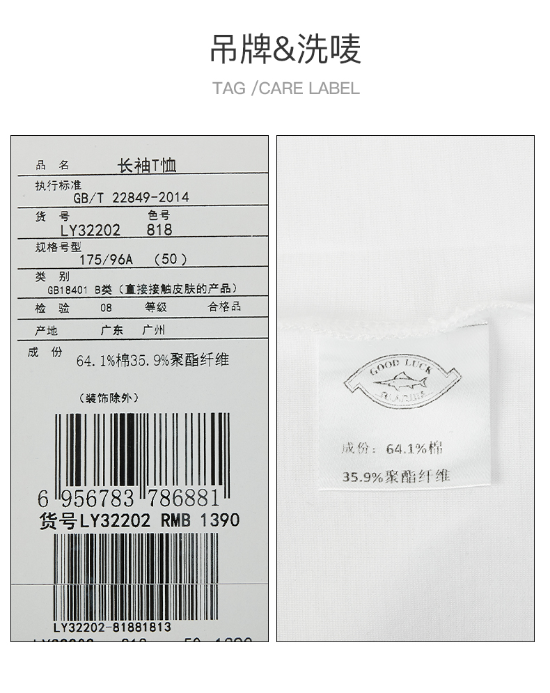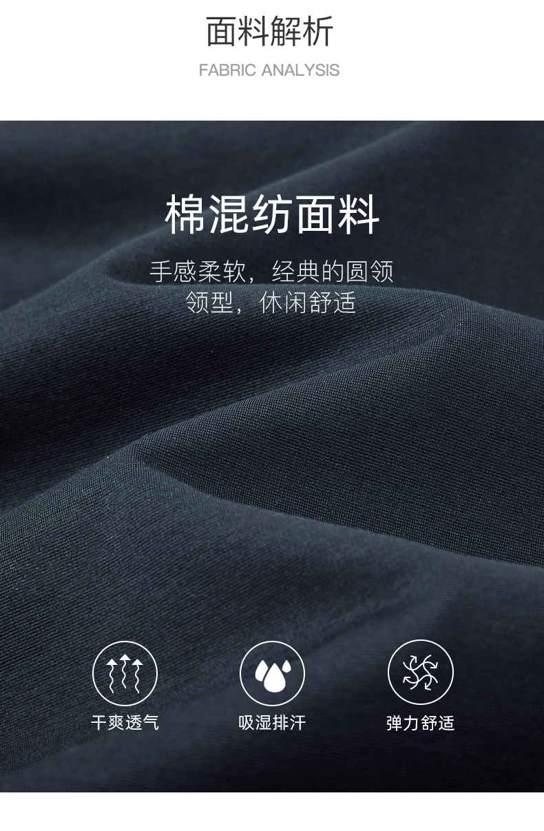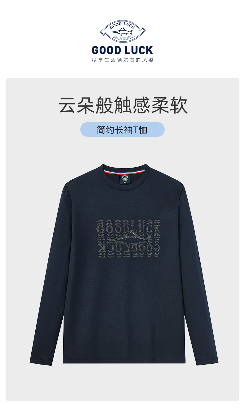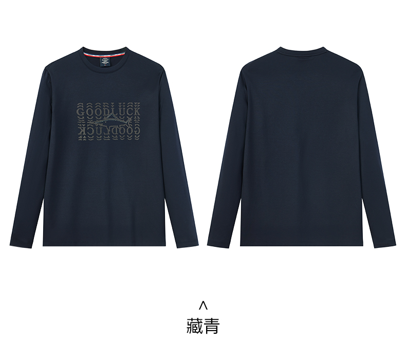 【棉混纺】德鲨长袖圆领T恤男青年2025春季新款休闲上衣打底体恤