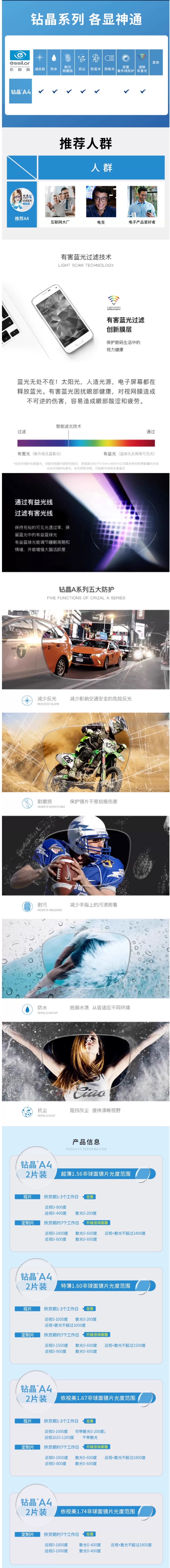 依视路钻晶A4非球面防蓝光近视镜片-TC