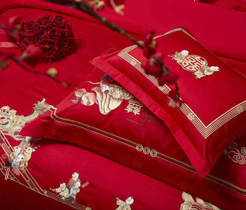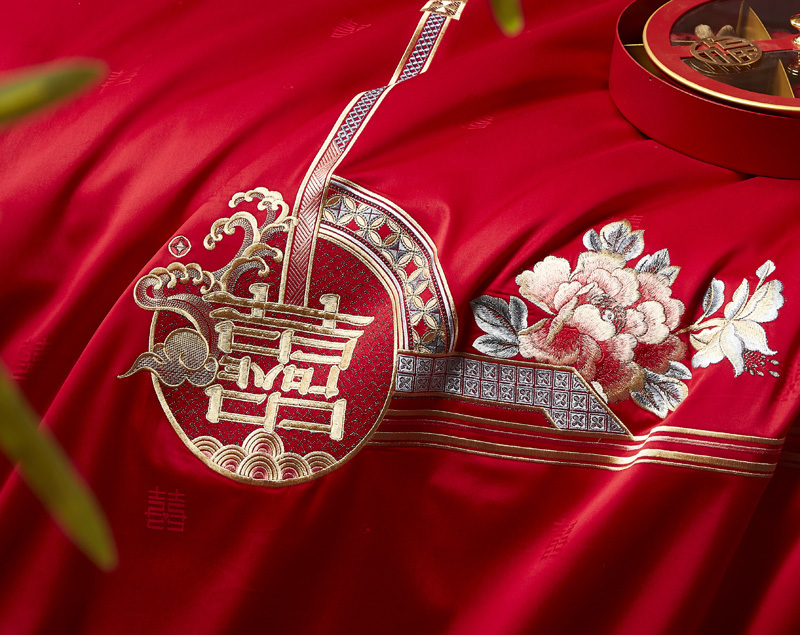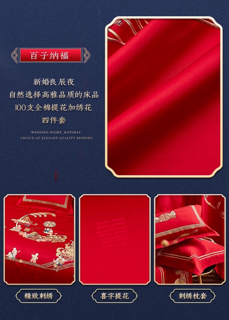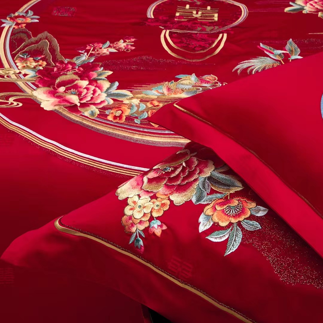 轻奢全棉提花绣婚庆四件套