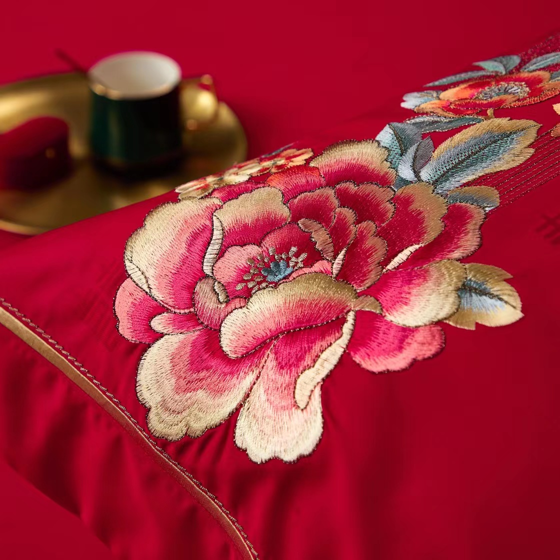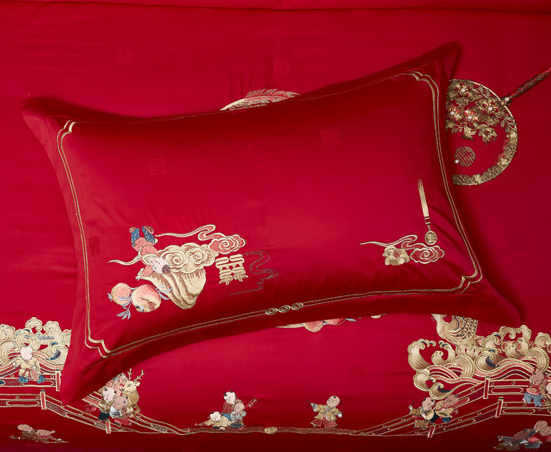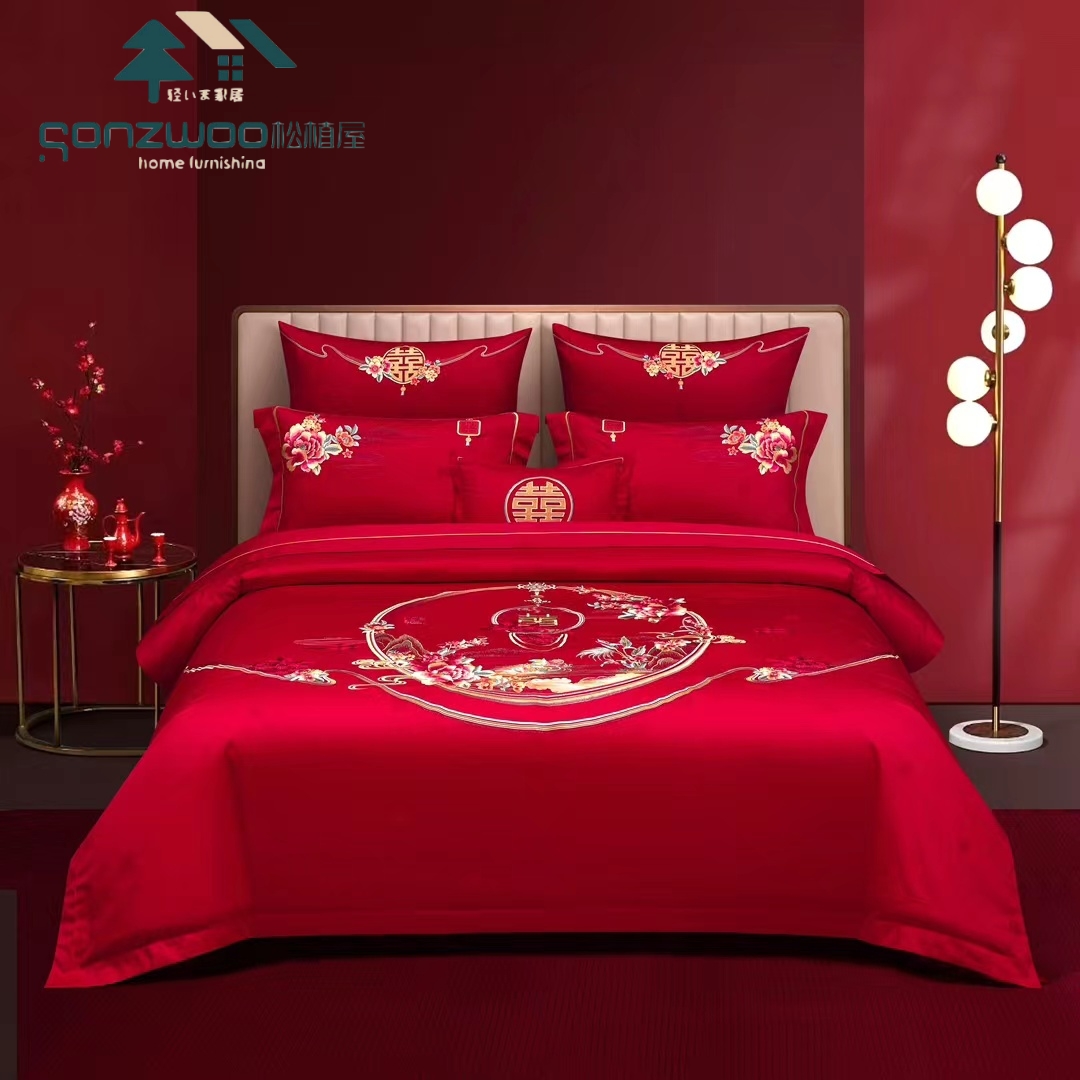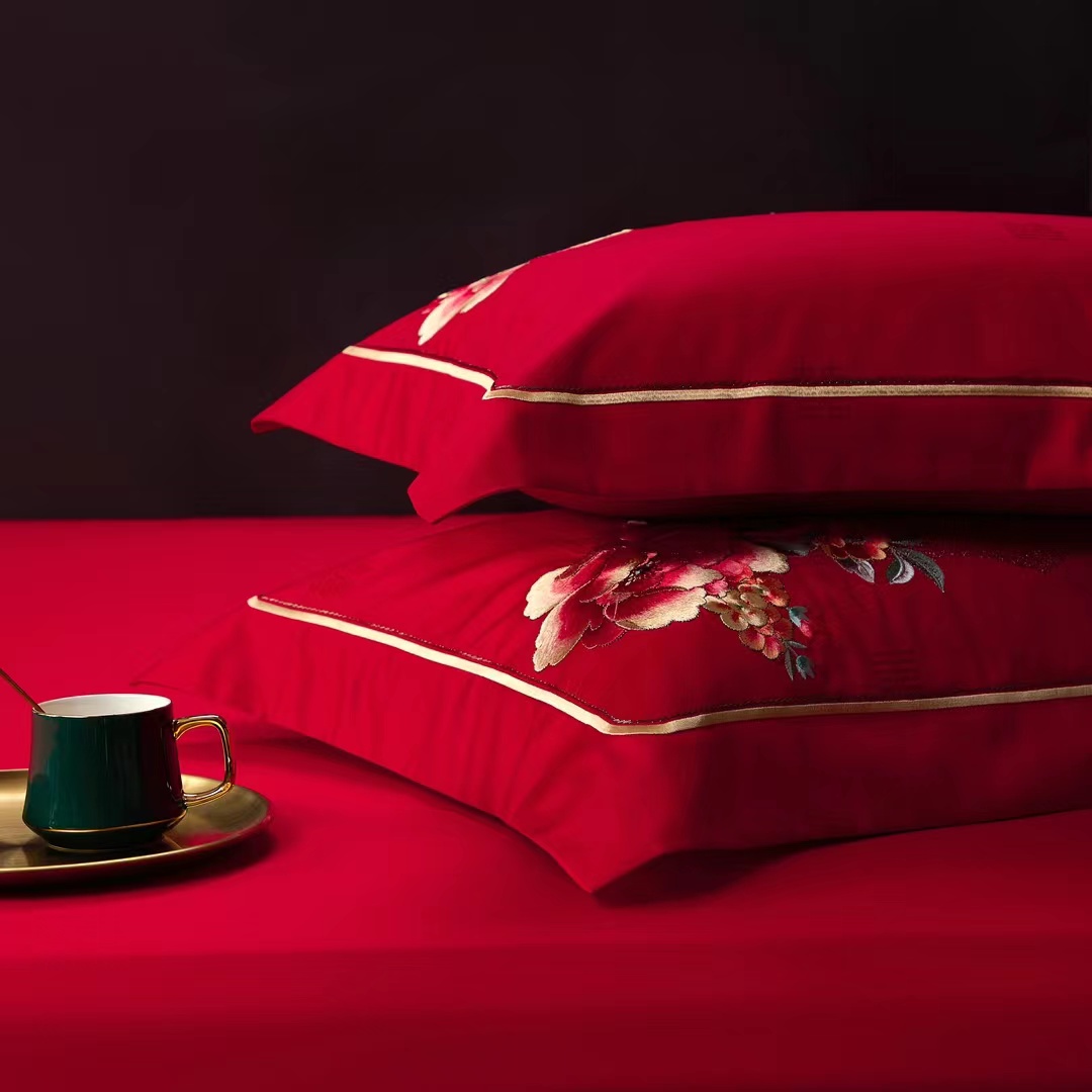 轻奢全棉提花绣婚庆四件套
