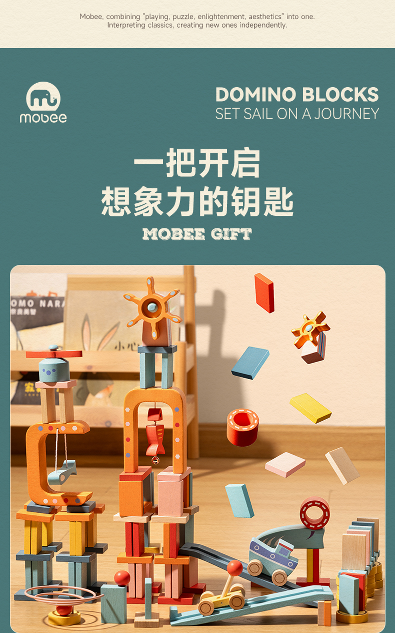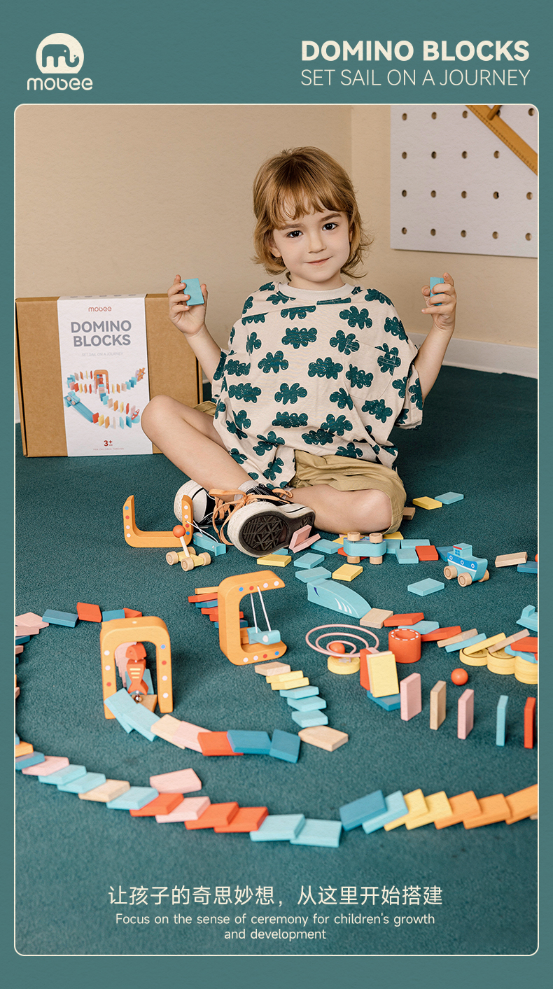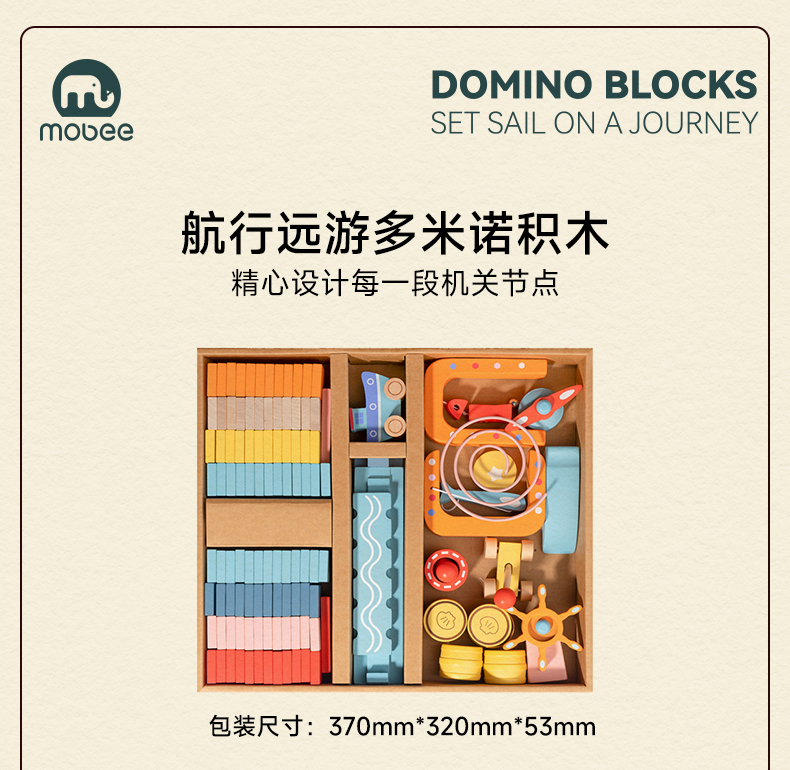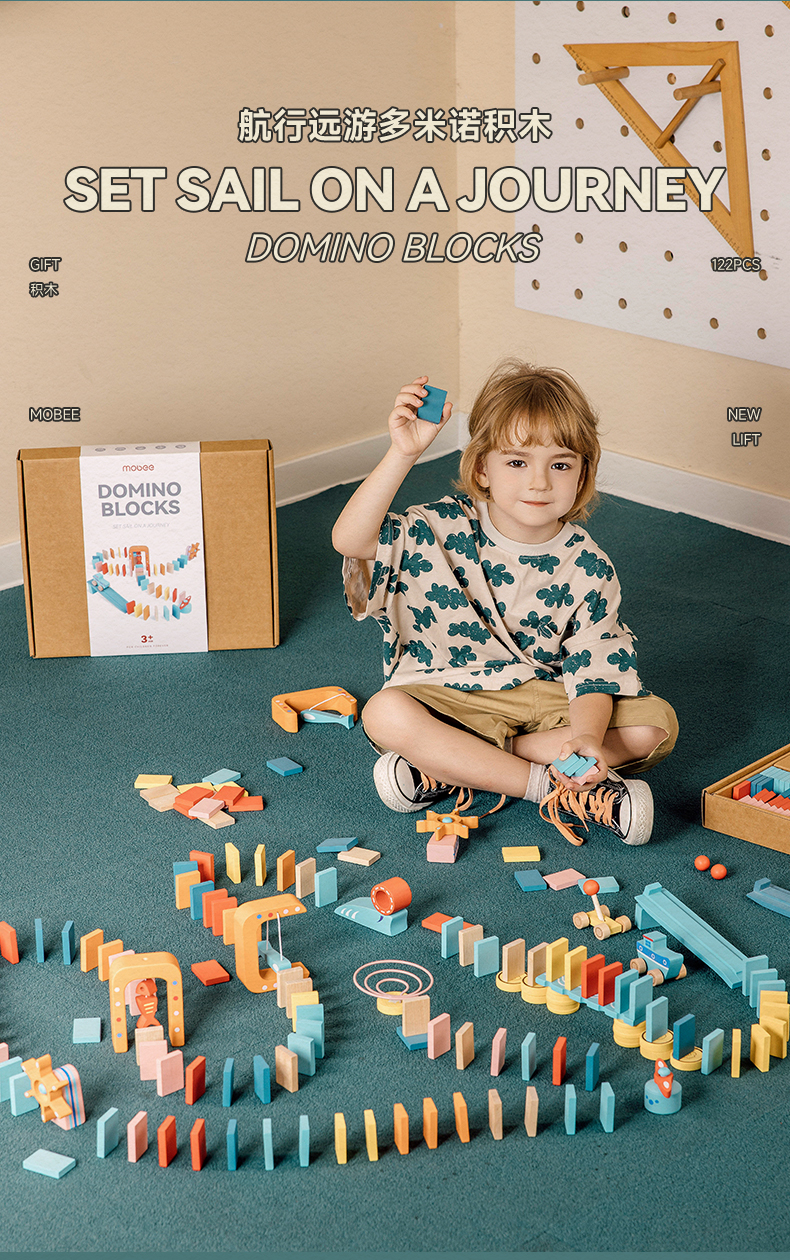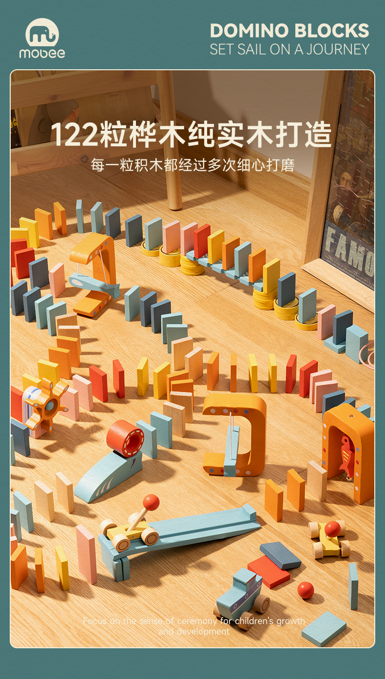 【15种关卡百变拼搭 培养专注力】 mobee航行远游多米诺积木122pcs 天然桦木环保染料 边玩边练专注力 儿童益智玩具早教礼物