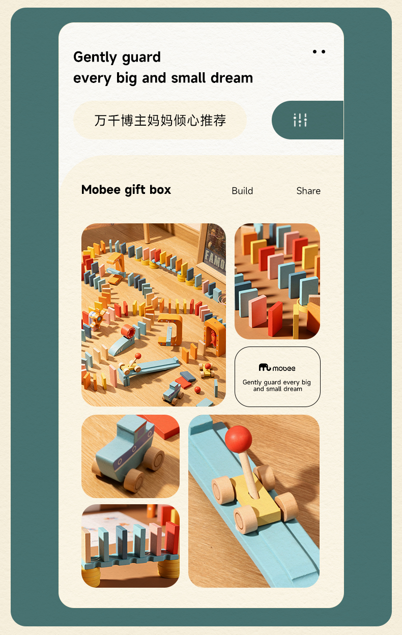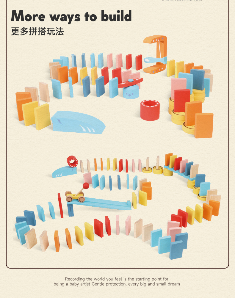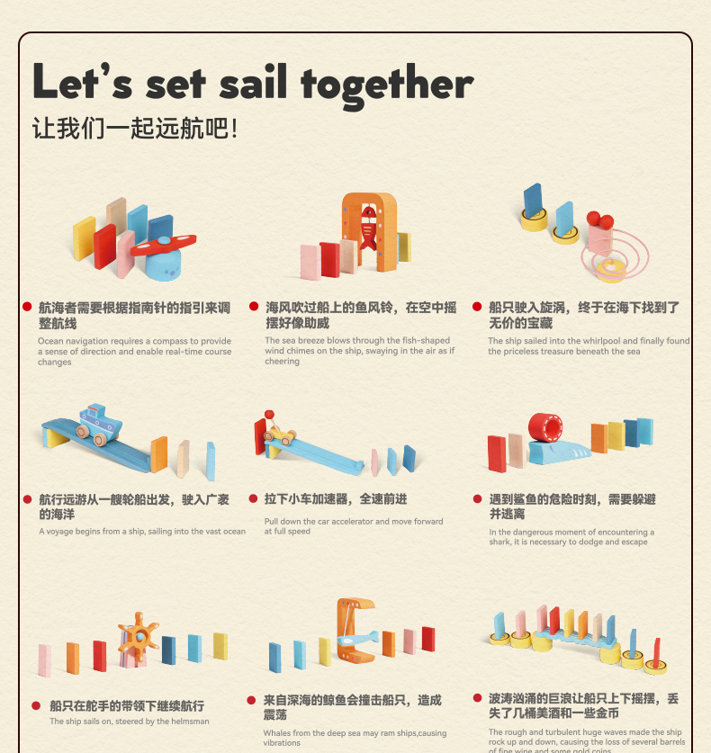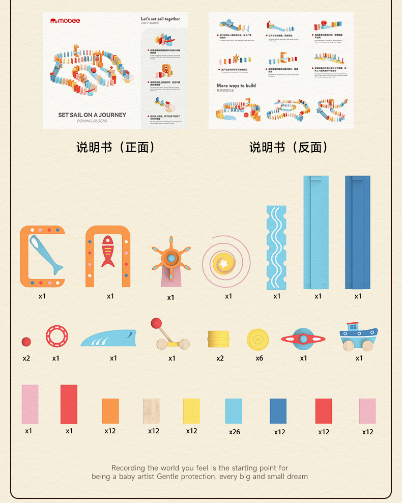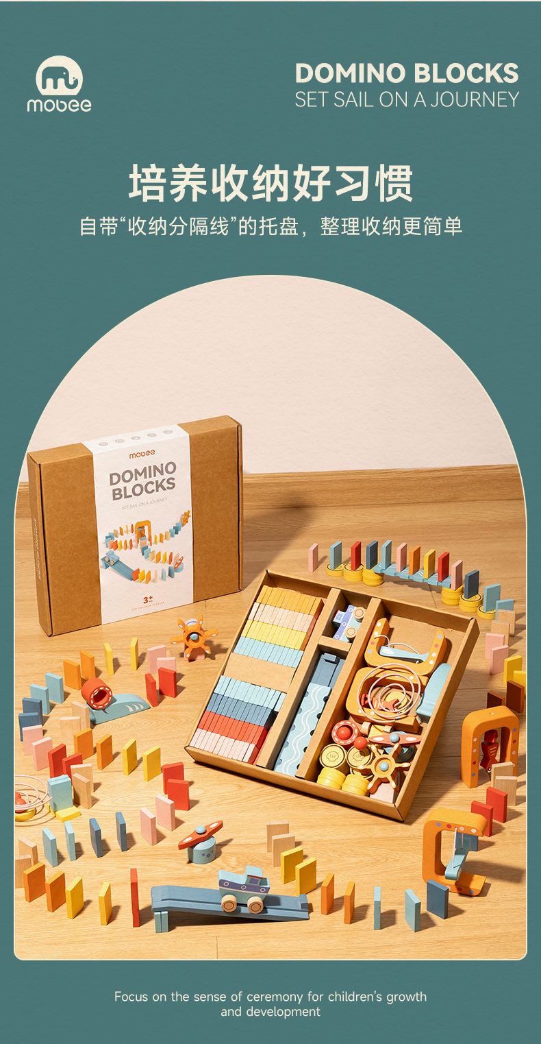 【15种关卡百变拼搭 培养专注力】 mobee航行远游多米诺积木122pcs 天然桦木环保染料 边玩边练专注力 儿童益智玩具早教礼物