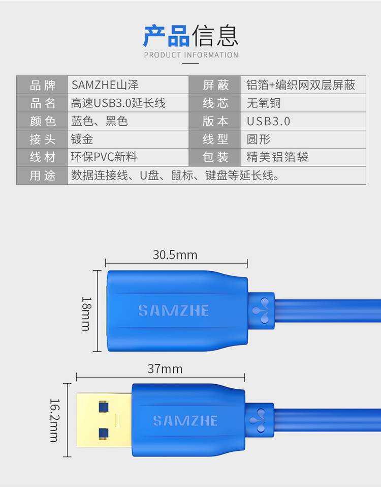 山泽(SAMZHE)USB3.0延长线 公对母 AM/AF 高速传输数据连接线 U盘鼠标键盘读卡器加长线 黑色1.5米 UK-015