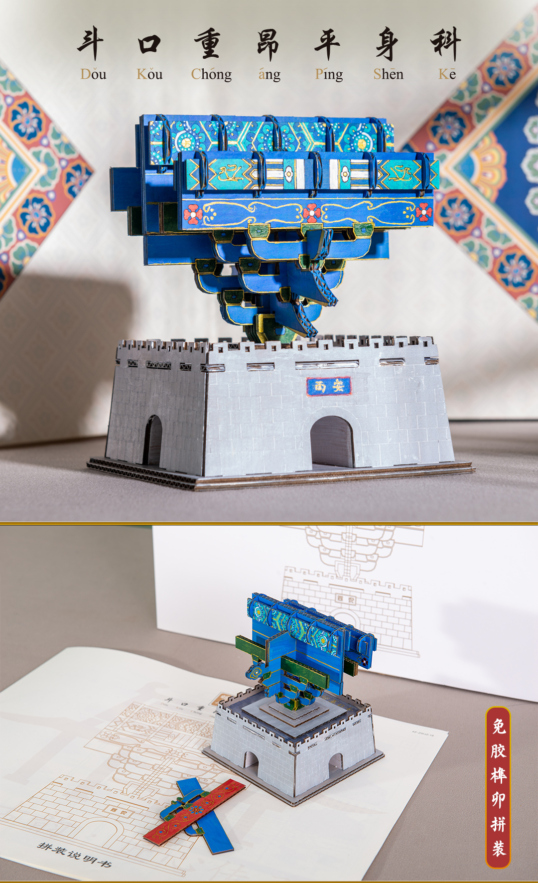 明式斗拱西安钟楼古建筑榫卯积木拼装纸玩模型益智手工玩具教具