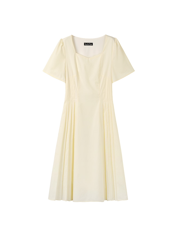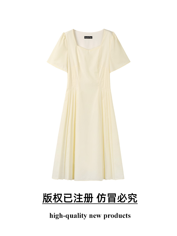 奢姿大码女装2025夏季气质方领设计连衣裙胖妹妹褶皱时尚简约裙子9952802068