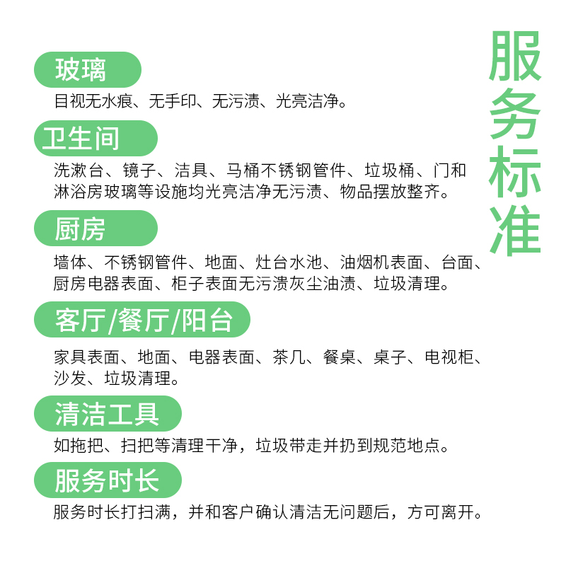 服务说明:临近春节期间库存较满,请提前安排您的保洁服务,若因库存问题导致无法服务,请您谅解!