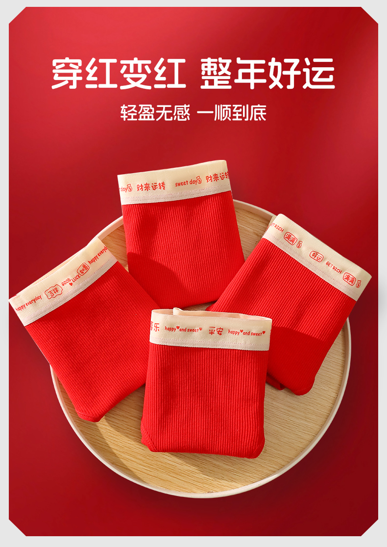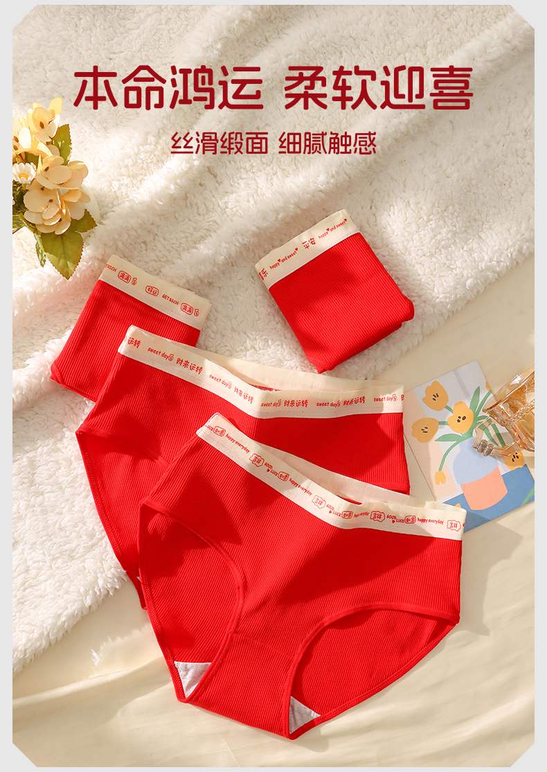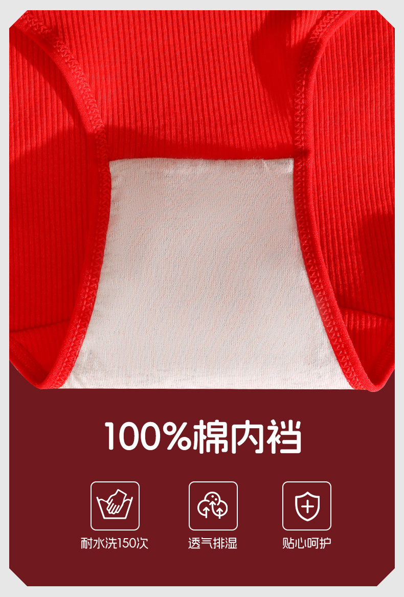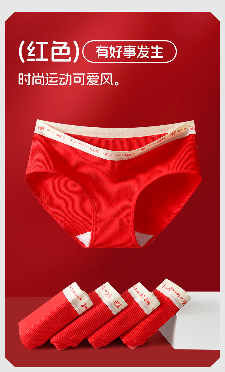 【本命红系列】洁丽雅4条装中腰纯棉女士内裤本命大红大码三角裤女