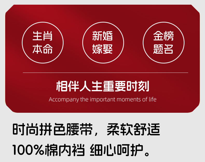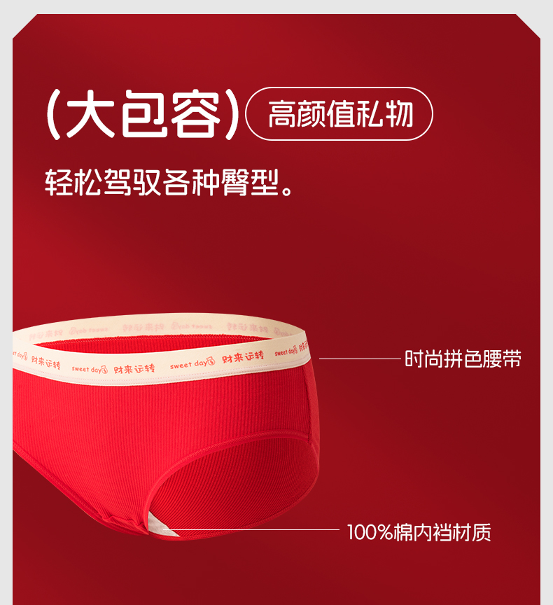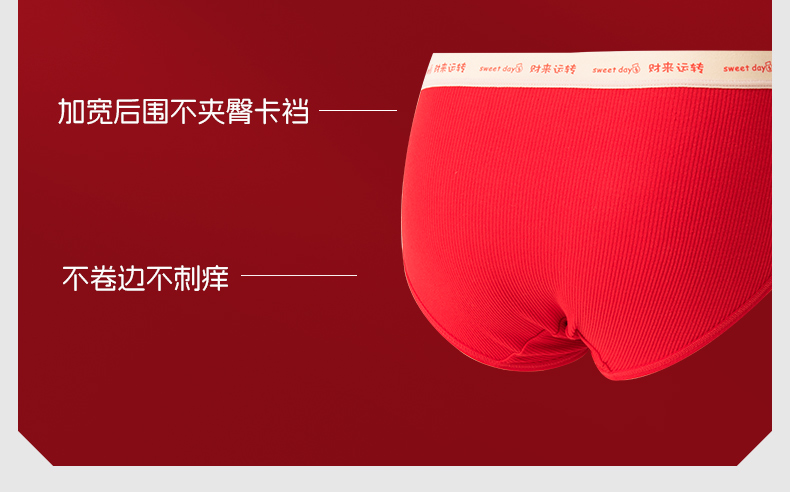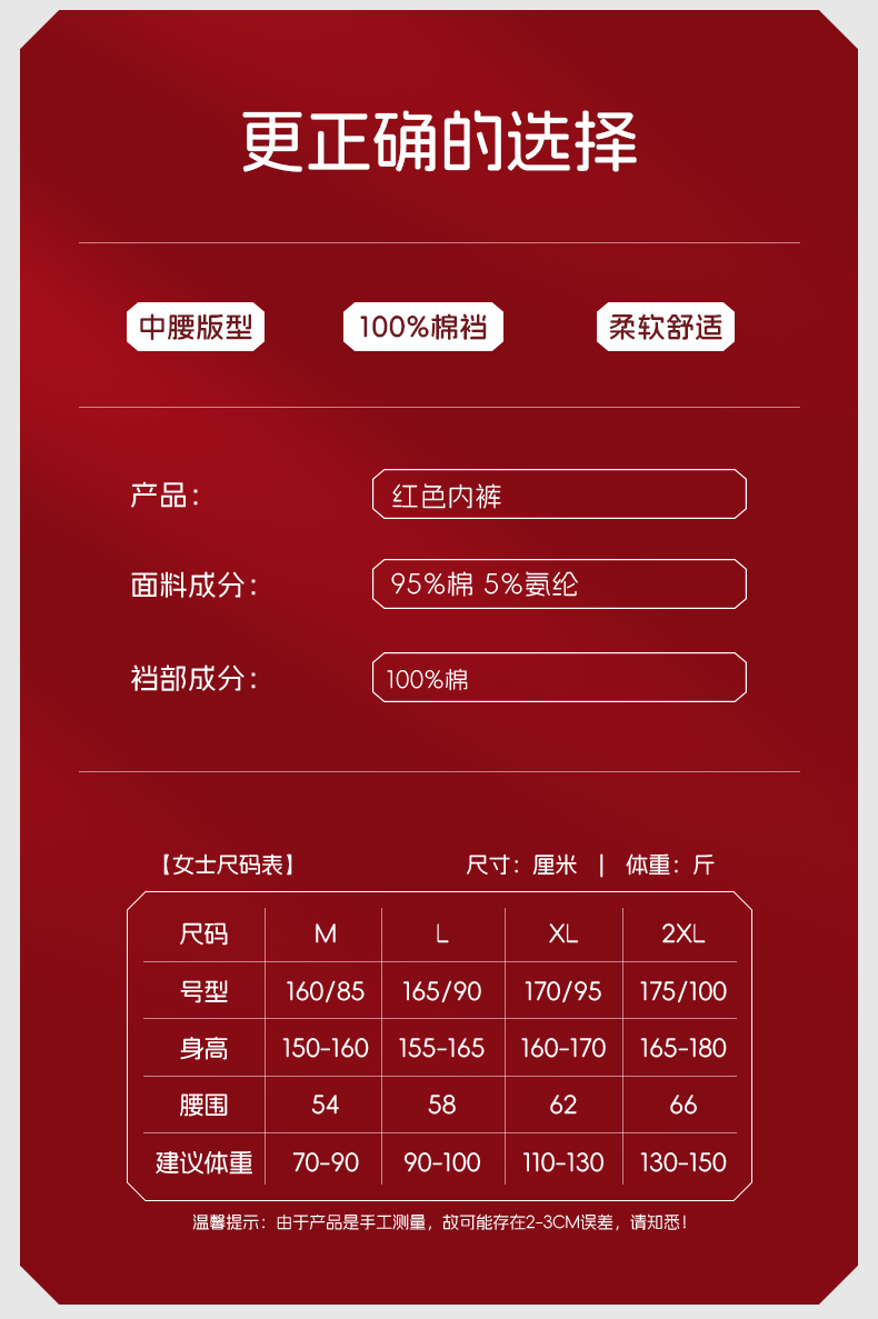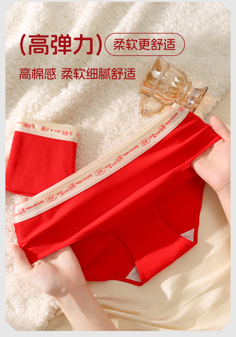 【本命红系列】洁丽雅4条装中腰纯棉女士内裤本命大红大码三角裤女