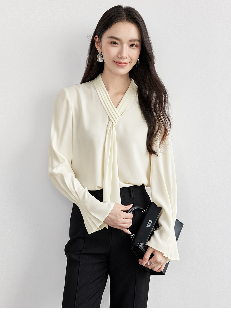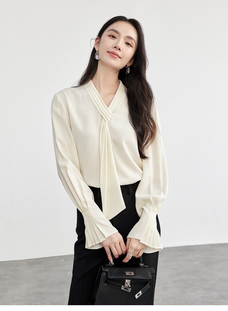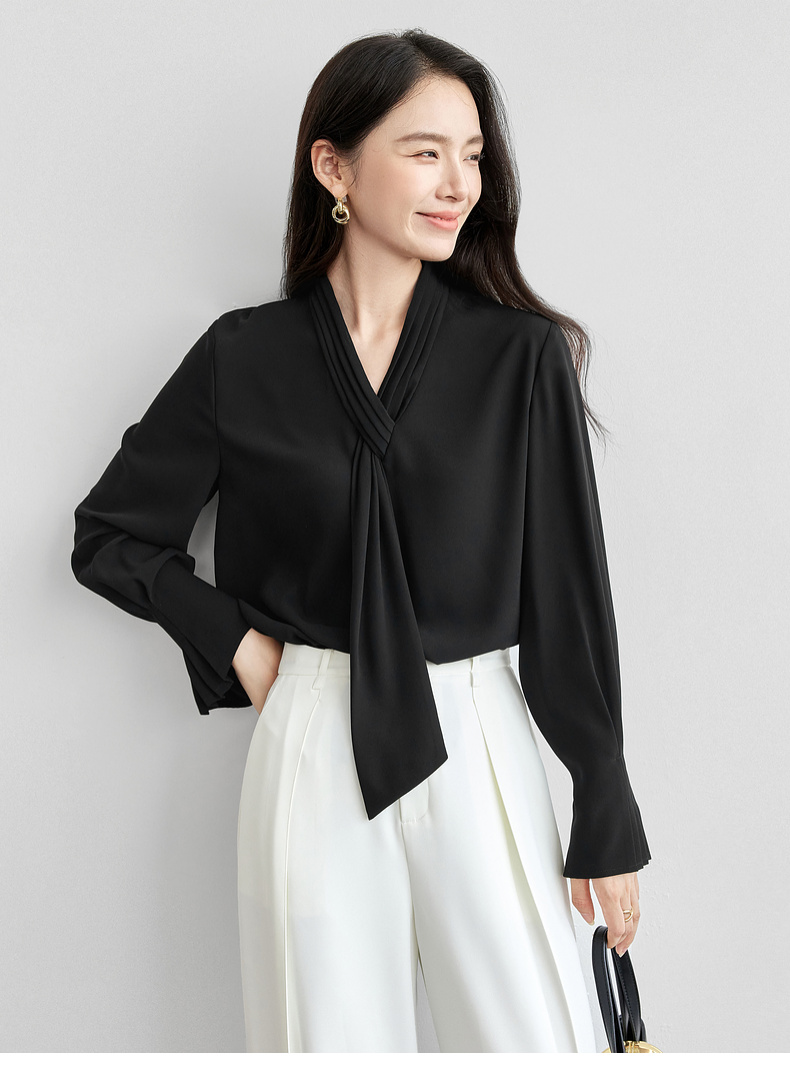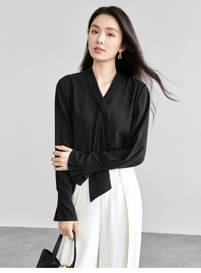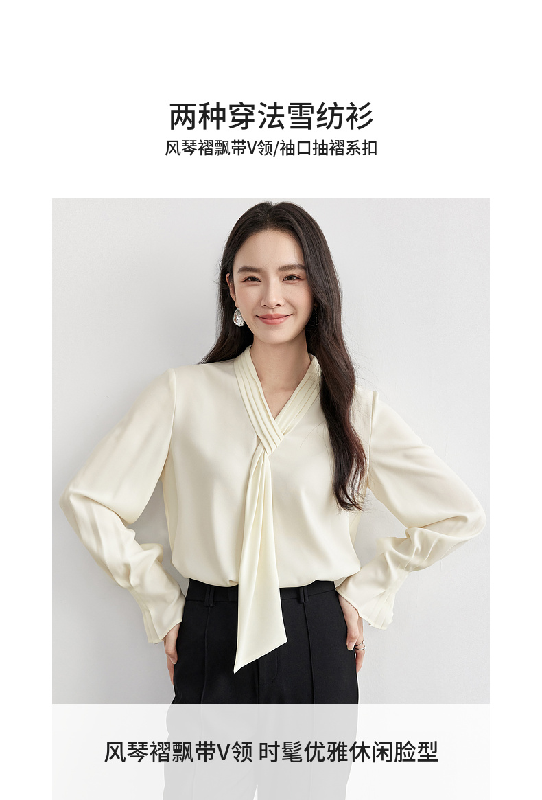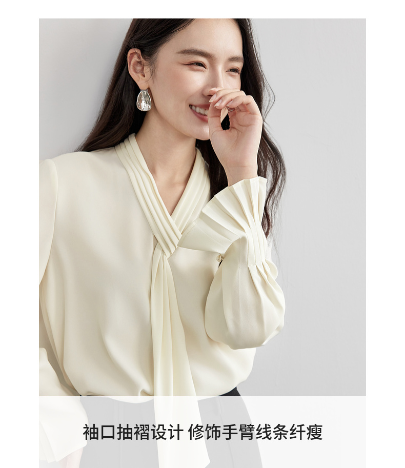 【内购】飘带领气质优雅时髦雪纺衫风琴褶设计佰搭场合衬衫上衣-151V57907