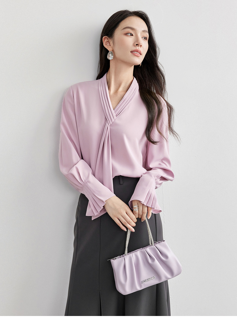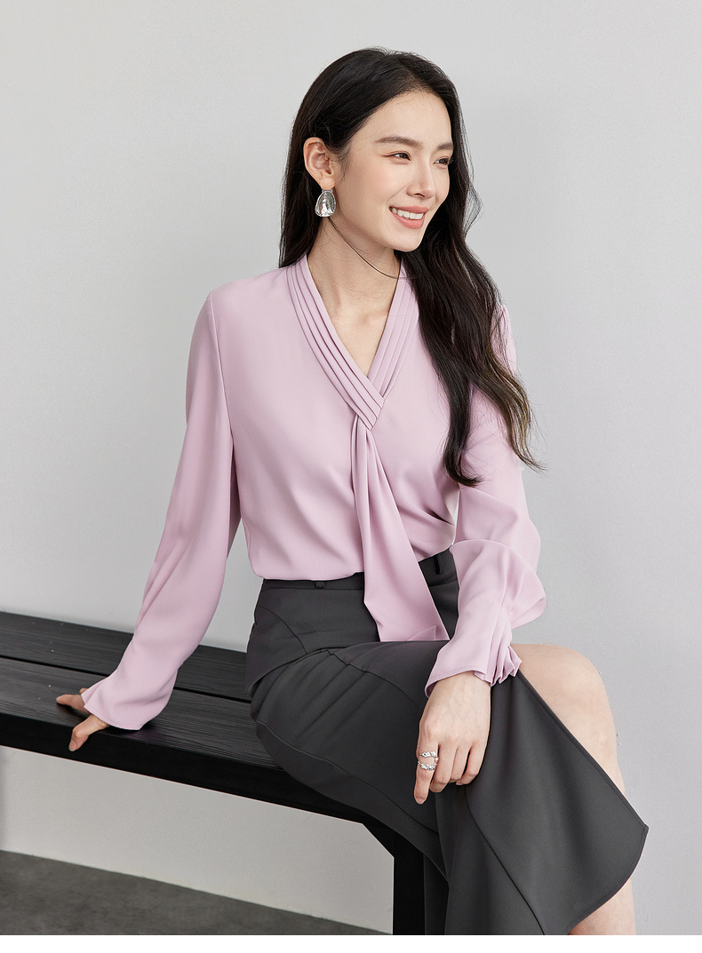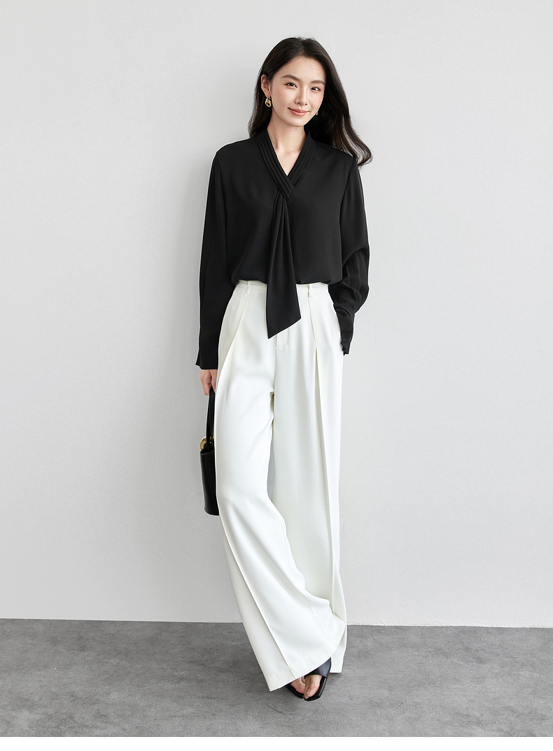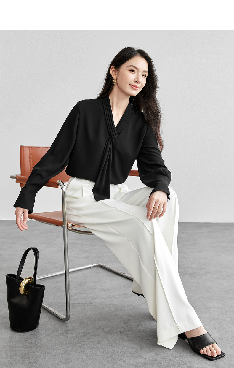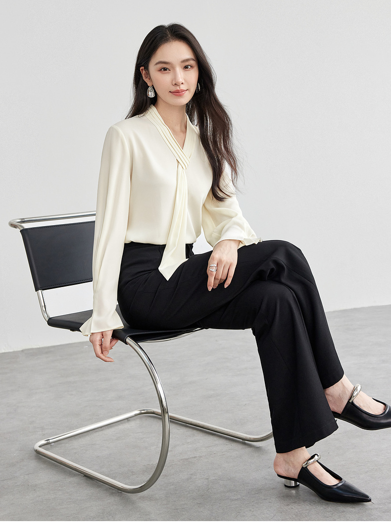 【内购】飘带领气质优雅时髦雪纺衫风琴褶设计佰搭场合衬衫上衣-151V57907
