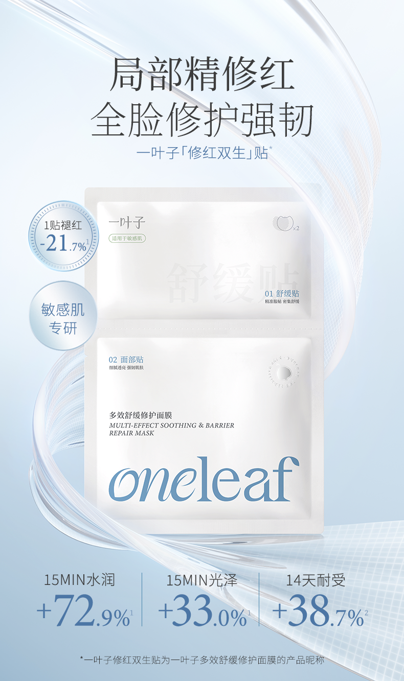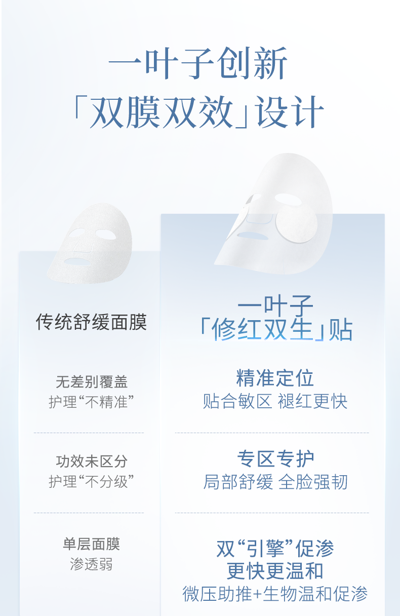 【重磅新品-分区面膜】一叶子多效舒缓修护面膜10片-双膜双效修护