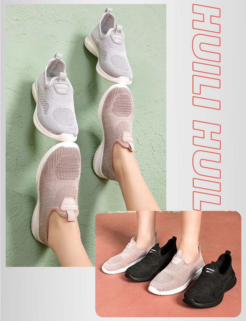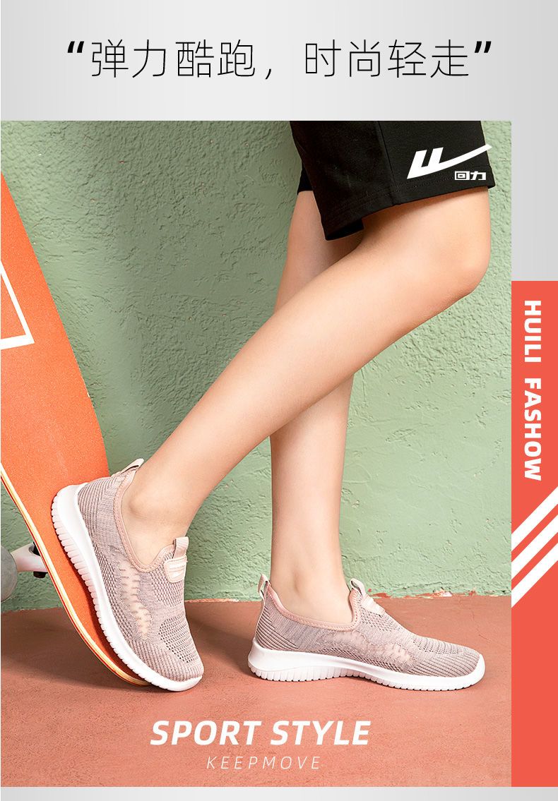 回力女鞋健步鞋2025新款秋季一脚蹬休闲运动鞋网面透气软底妈妈鞋