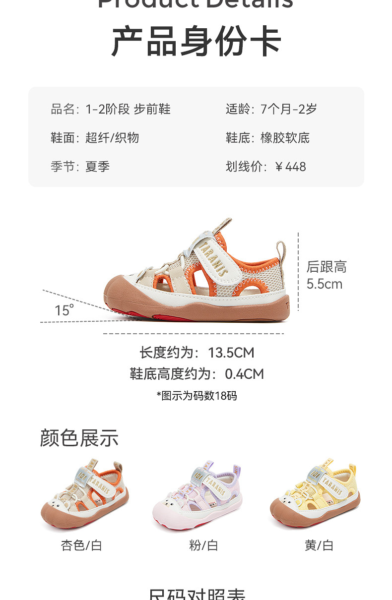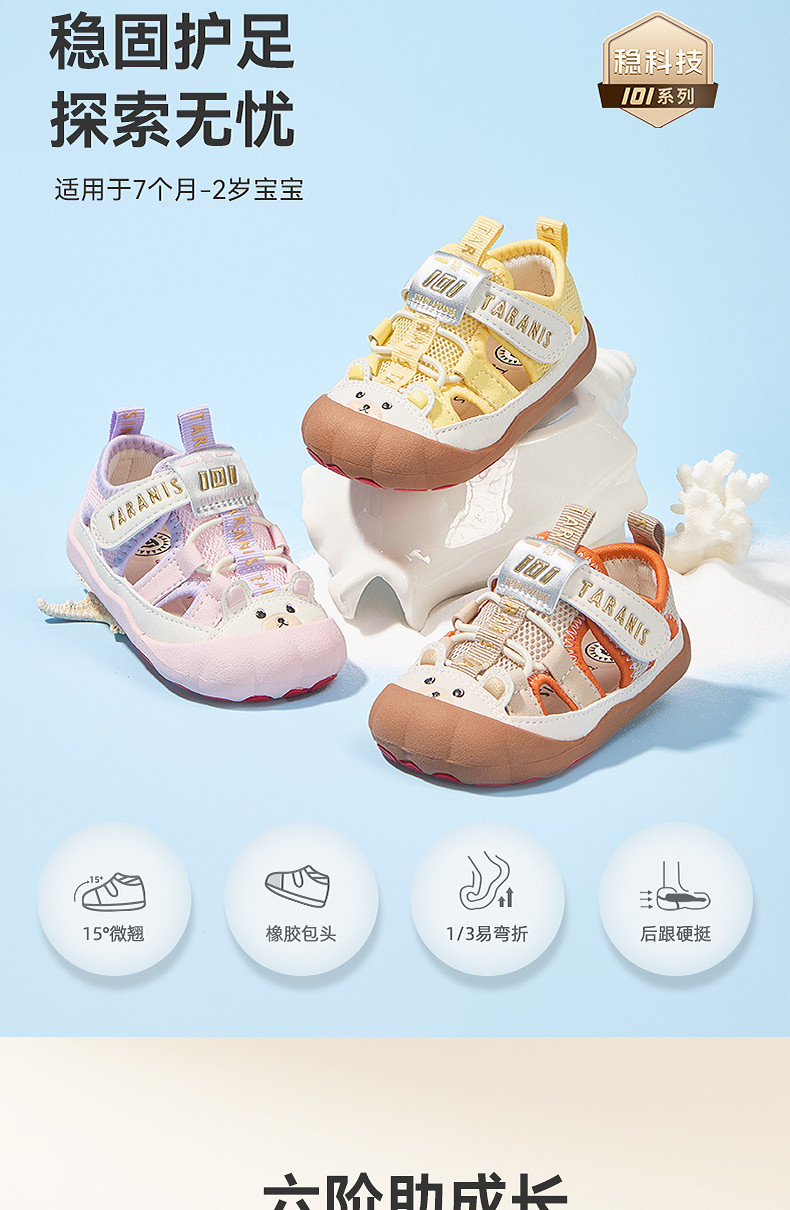 泰兰尼斯101童鞋夏季步前鞋女童赤足鞋婴儿鞋男童宝宝鞋透气凉鞋T24B6B8791