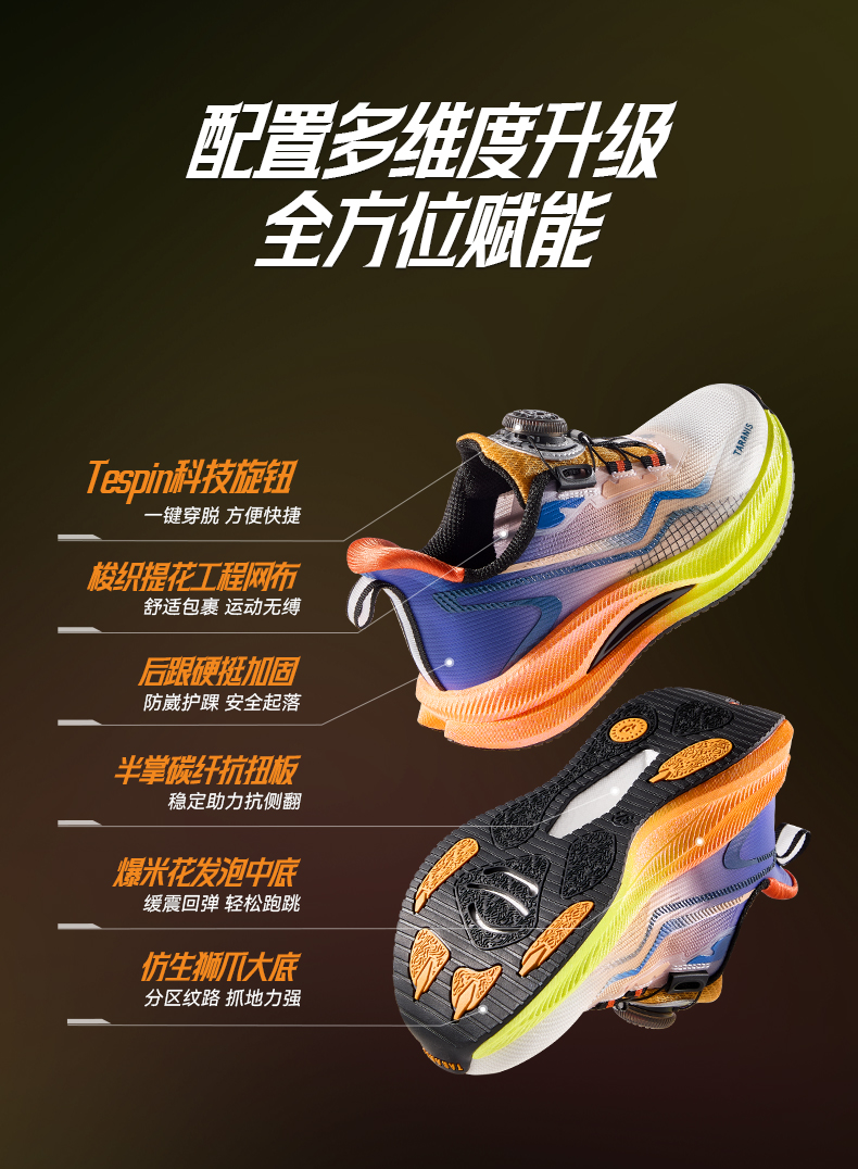 泰兰尼斯破风系列春季新款防滑减震男童女童轻便跑步鞋综训鞋T01D6A8750