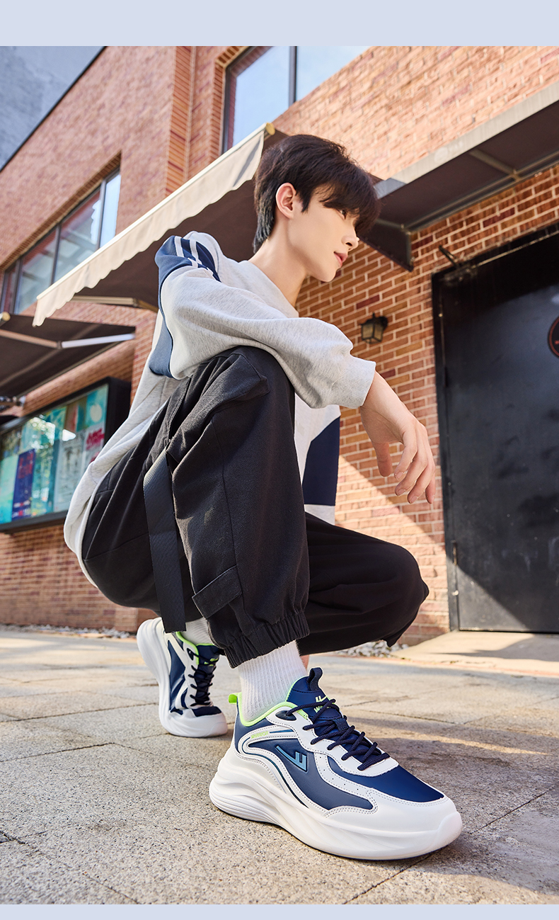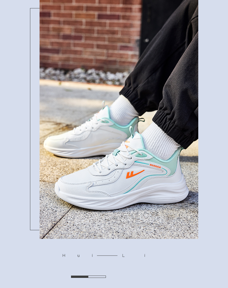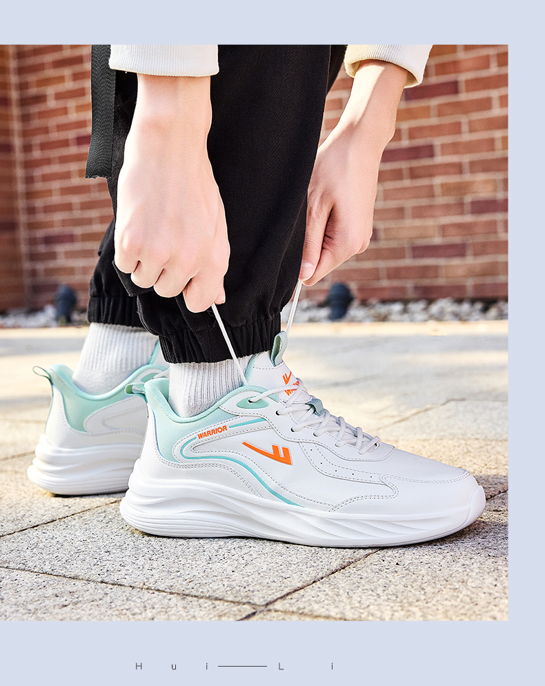 回力男鞋春学生青少年透气休闲鞋子白色减震皮面运动鞋软底跑步鞋WL(AB)-0612-1